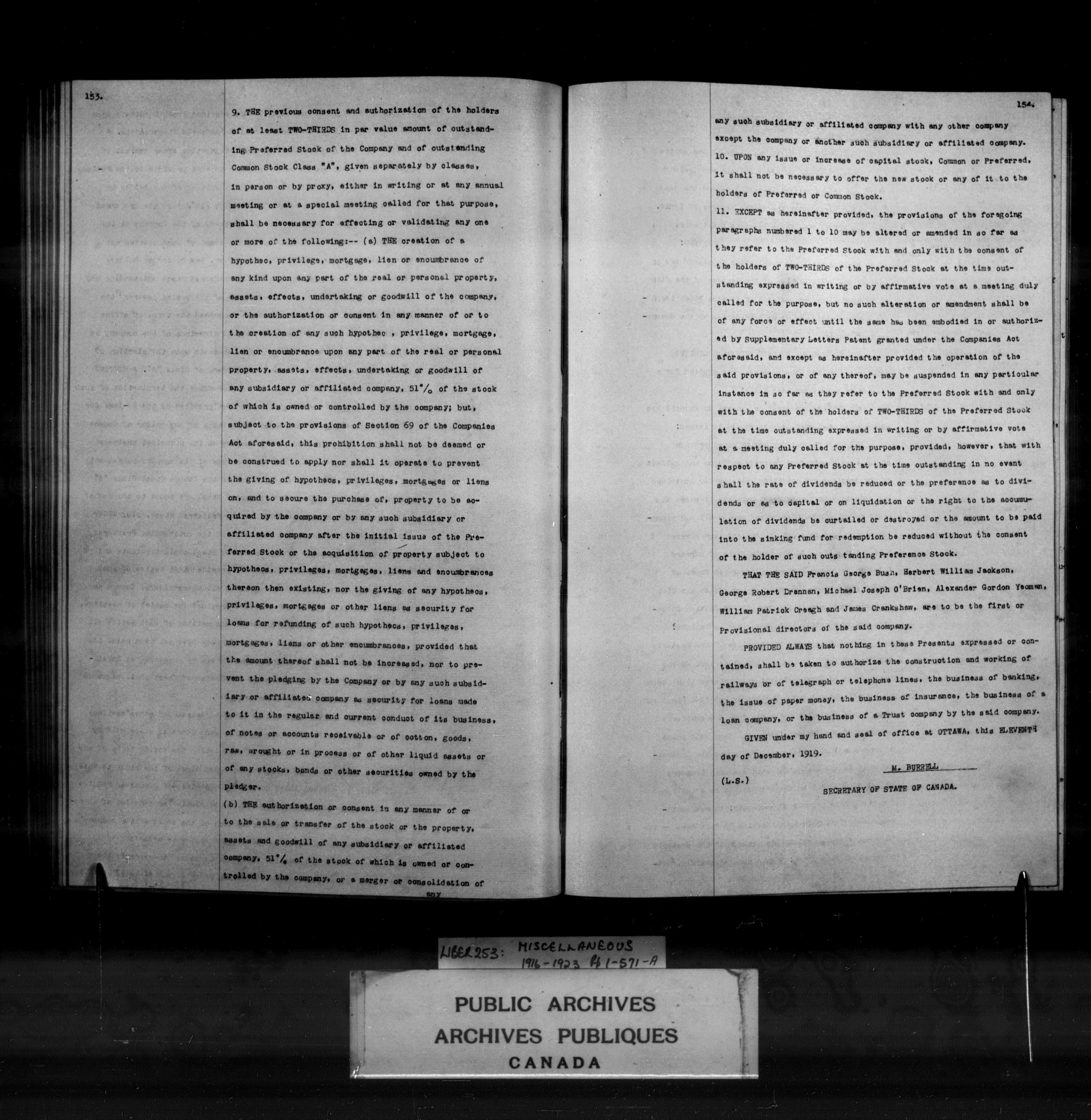 Miscellaneous registers Province of Canada and Canada, 1850-1953 - 4067