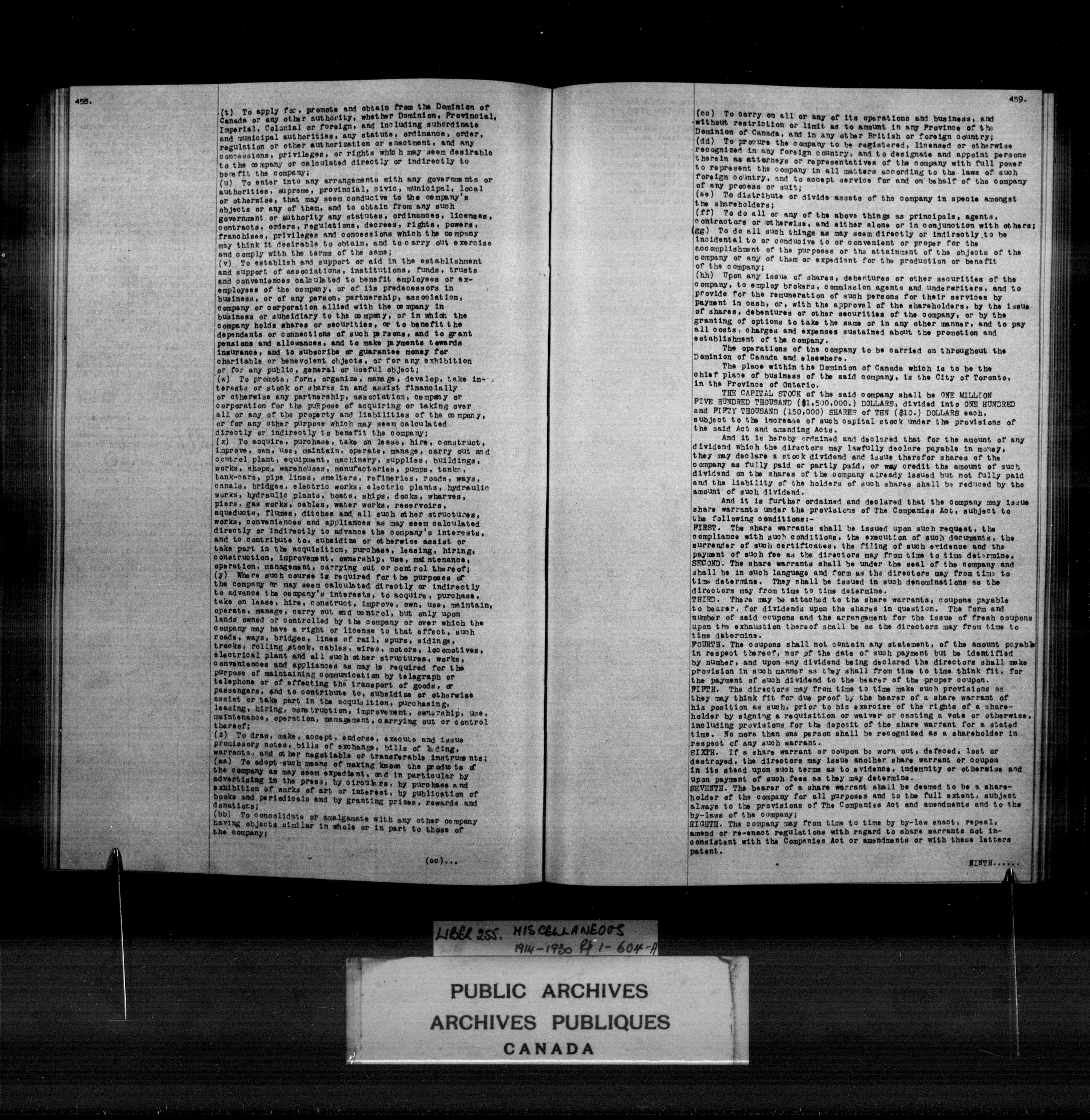 Miscellaneous registers Province of Canada and Canada, 1850-1953 - 4068