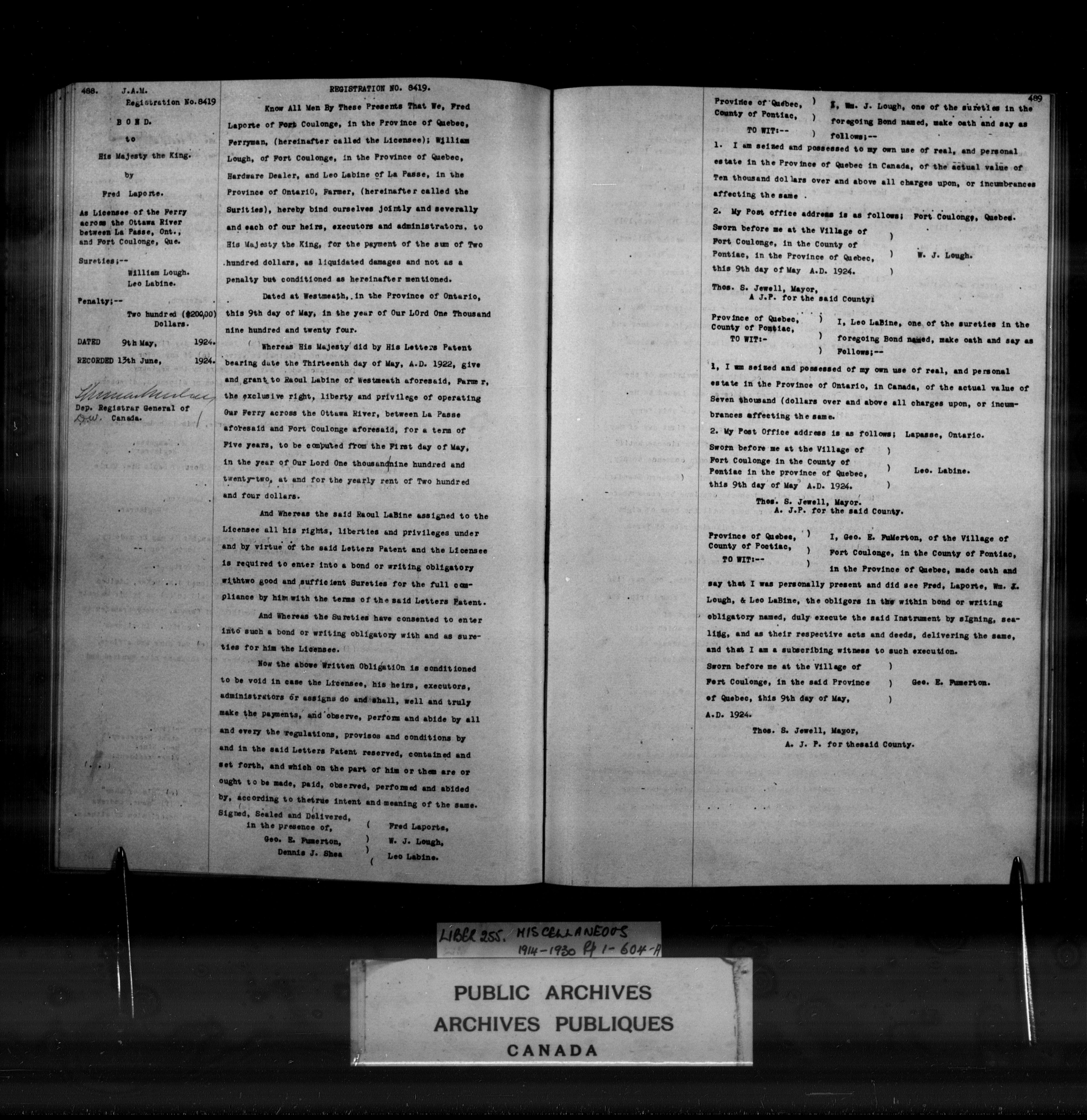 Miscellaneous registers Province of Canada and Canada, 1850-1953 - 4068