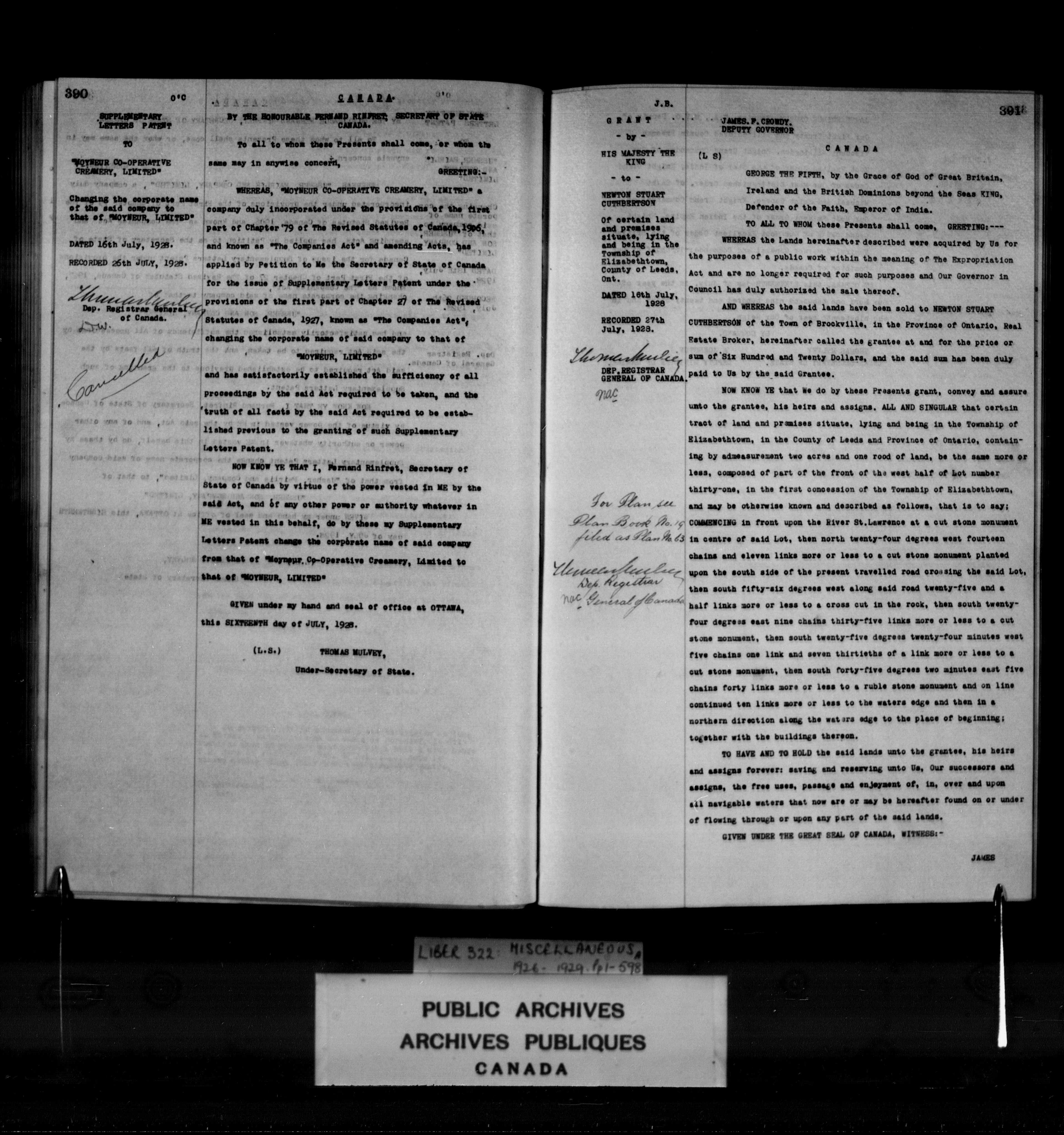 Miscellaneous registers Province of Canada and Canada, 1850-1953 - 4091