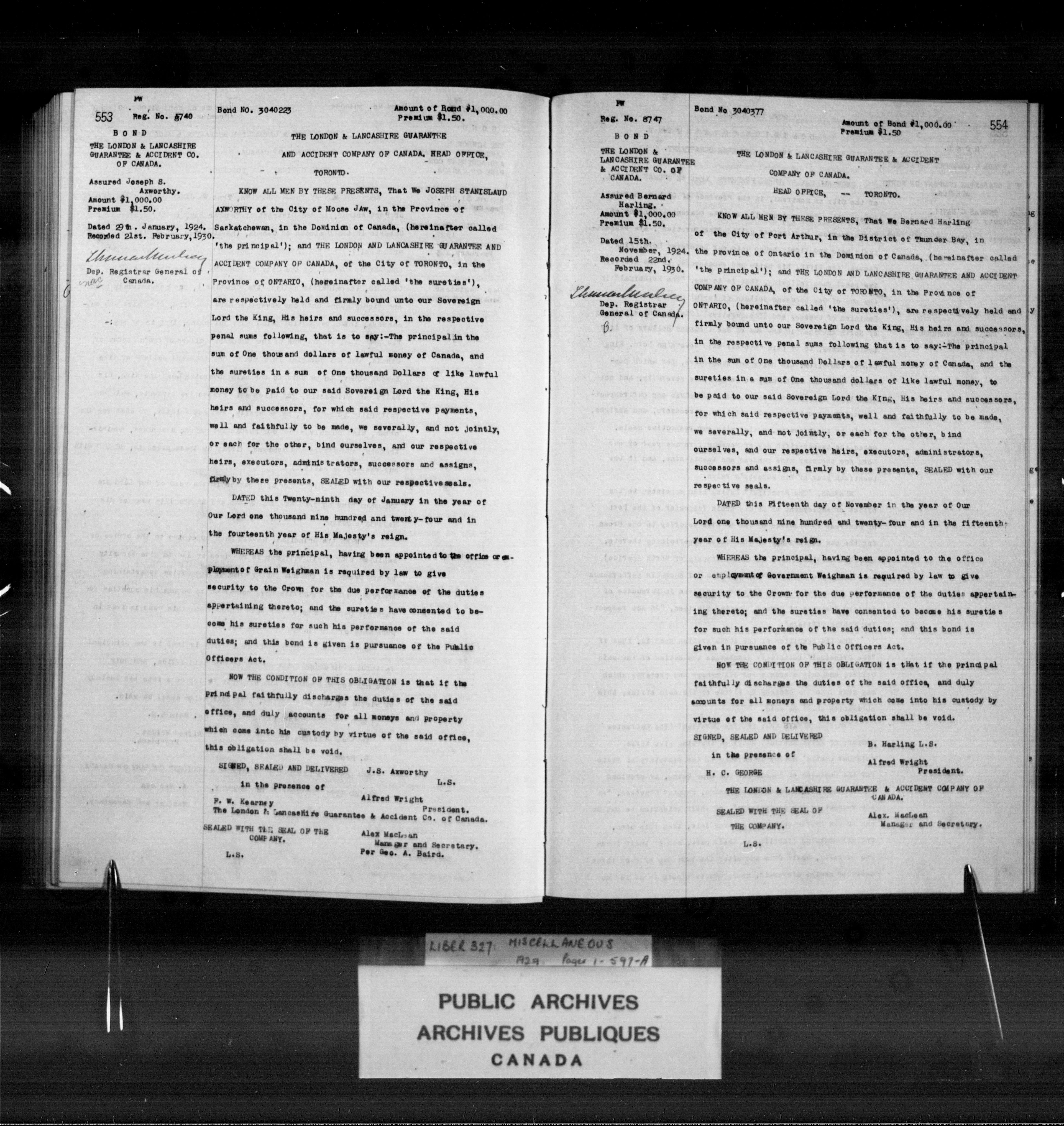 Miscellaneous registers Province of Canada and Canada, 1850-1953 - 4093
