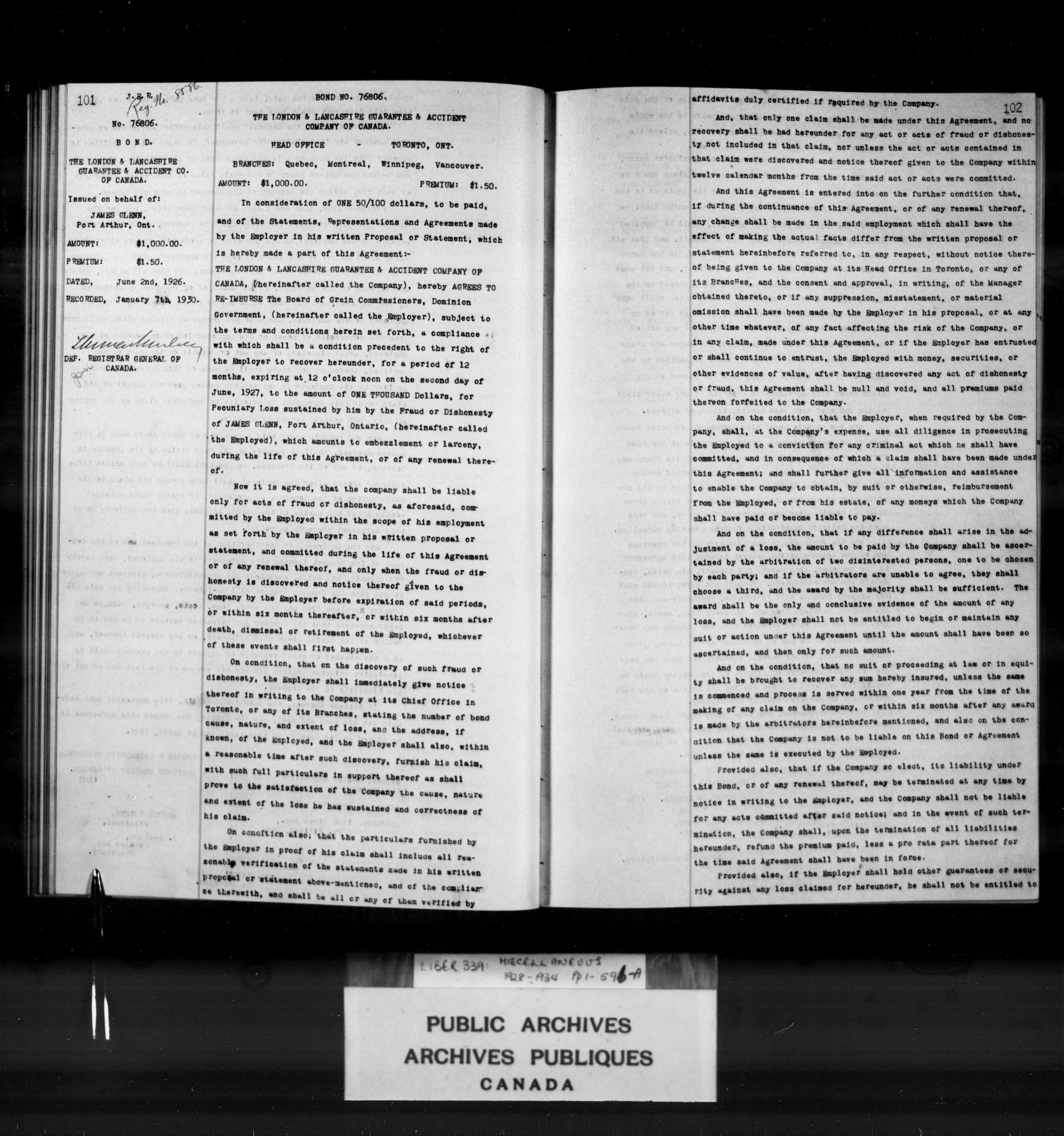 Miscellaneous registers Province of Canada and Canada, 1850-1953 - 4096