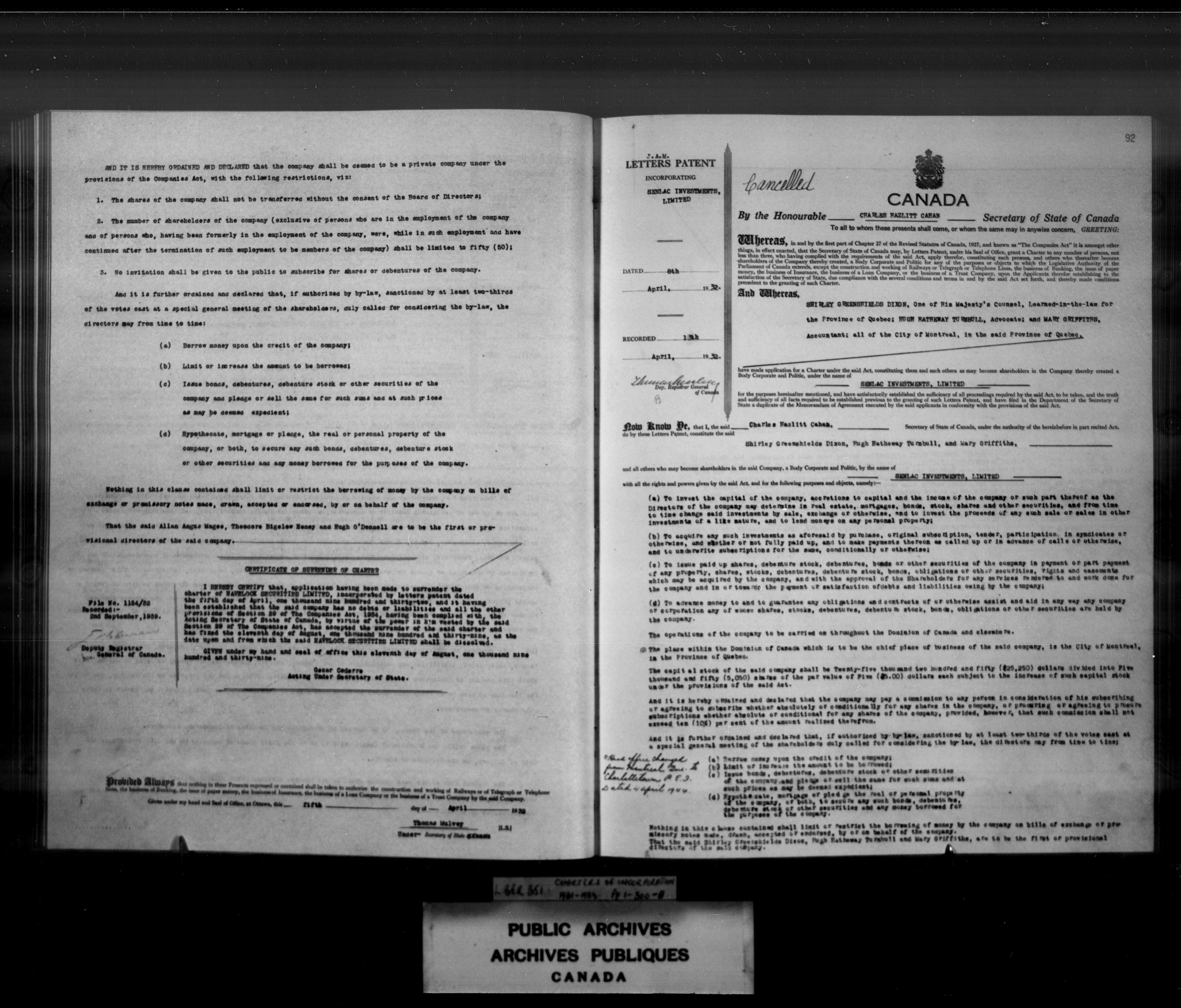 Bonds and securities Upper and Lower Canada, Province of Canada, and Canada - 4100
