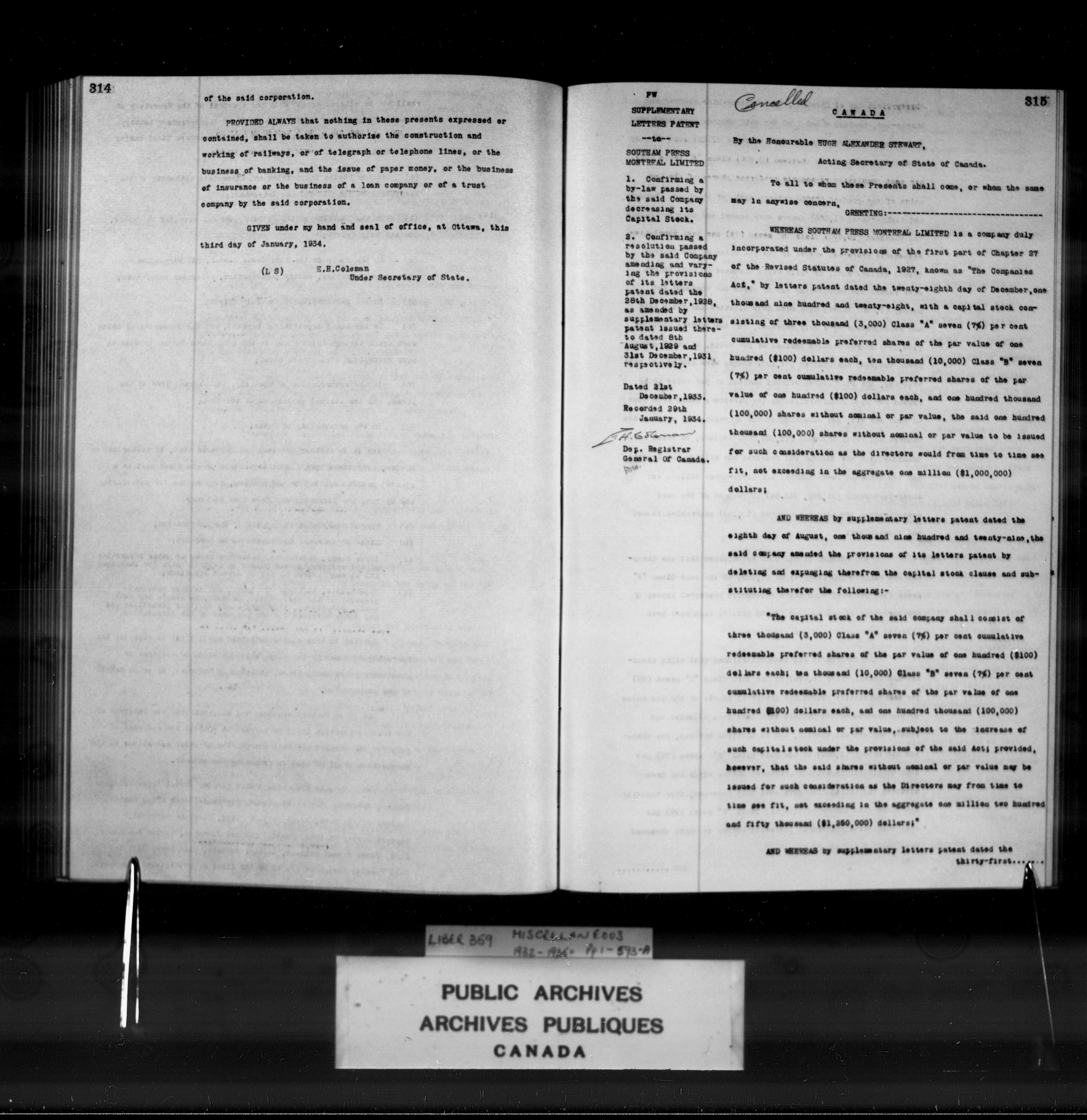 Miscellaneous registers Province of Canada and Canada, 1850-1953 - 4103
