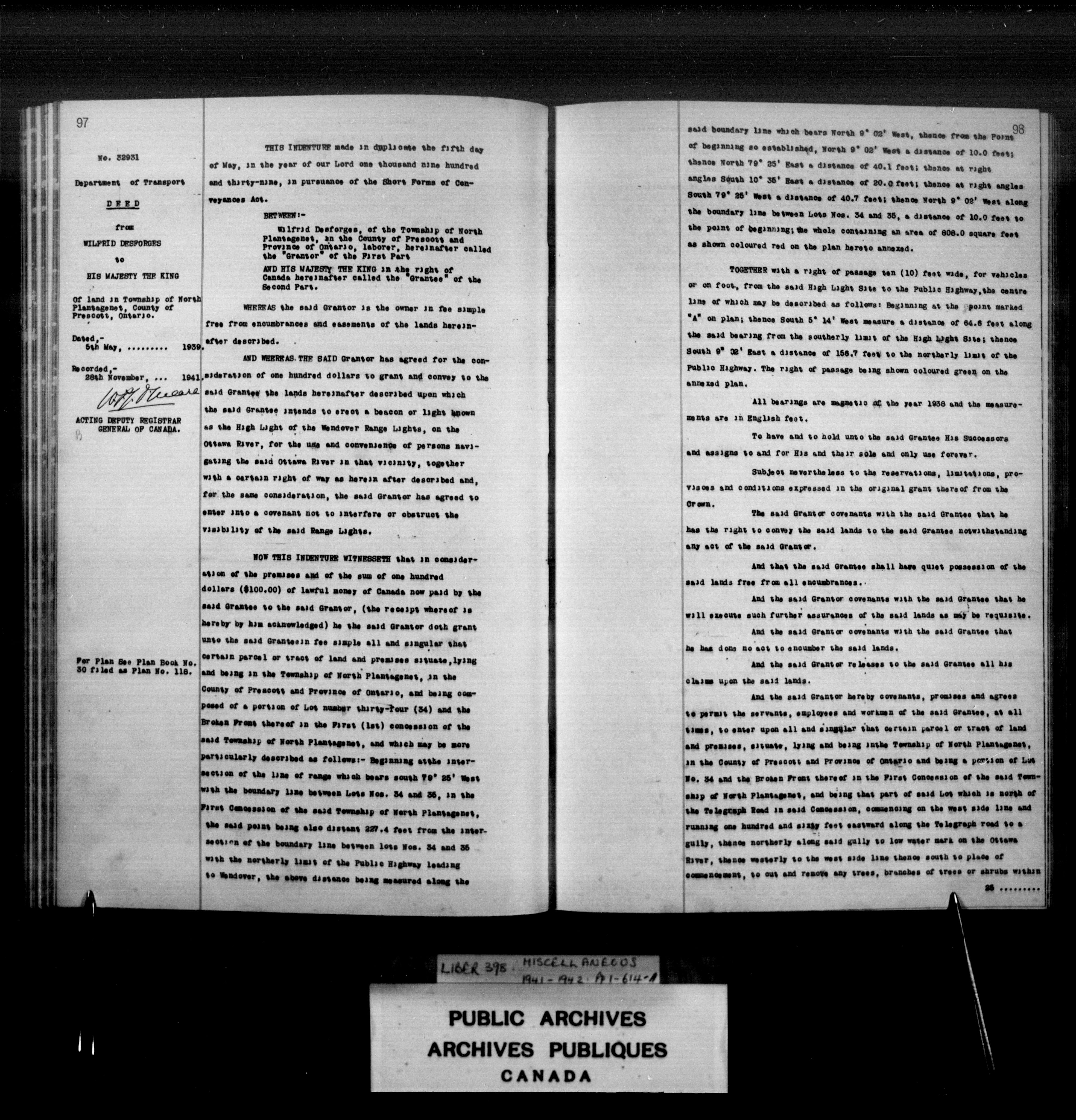 Miscellaneous registers Province of Canada and Canada, 1850-1953 - 4117