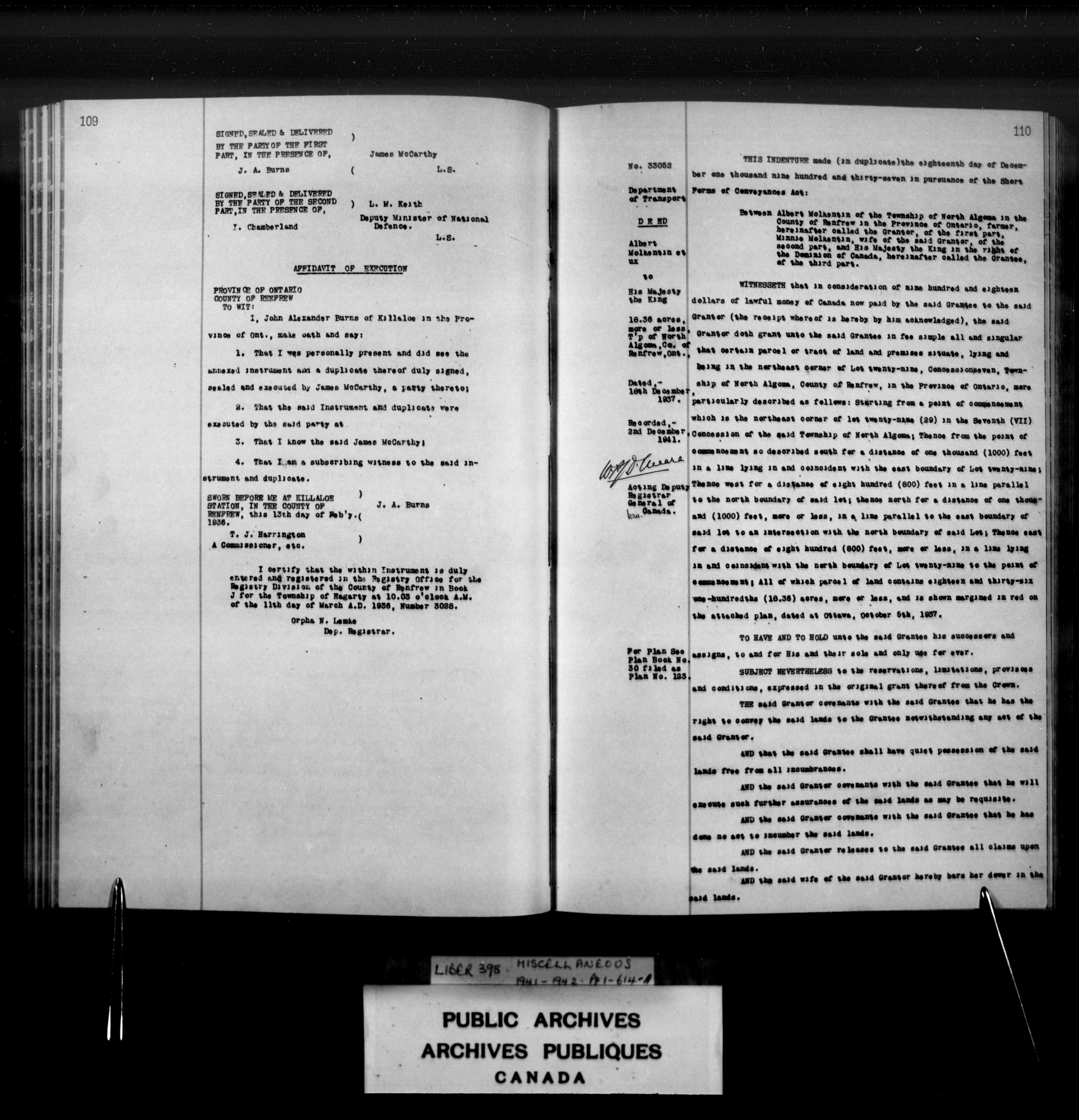 Miscellaneous registers Province of Canada and Canada, 1850-1953 - 4117