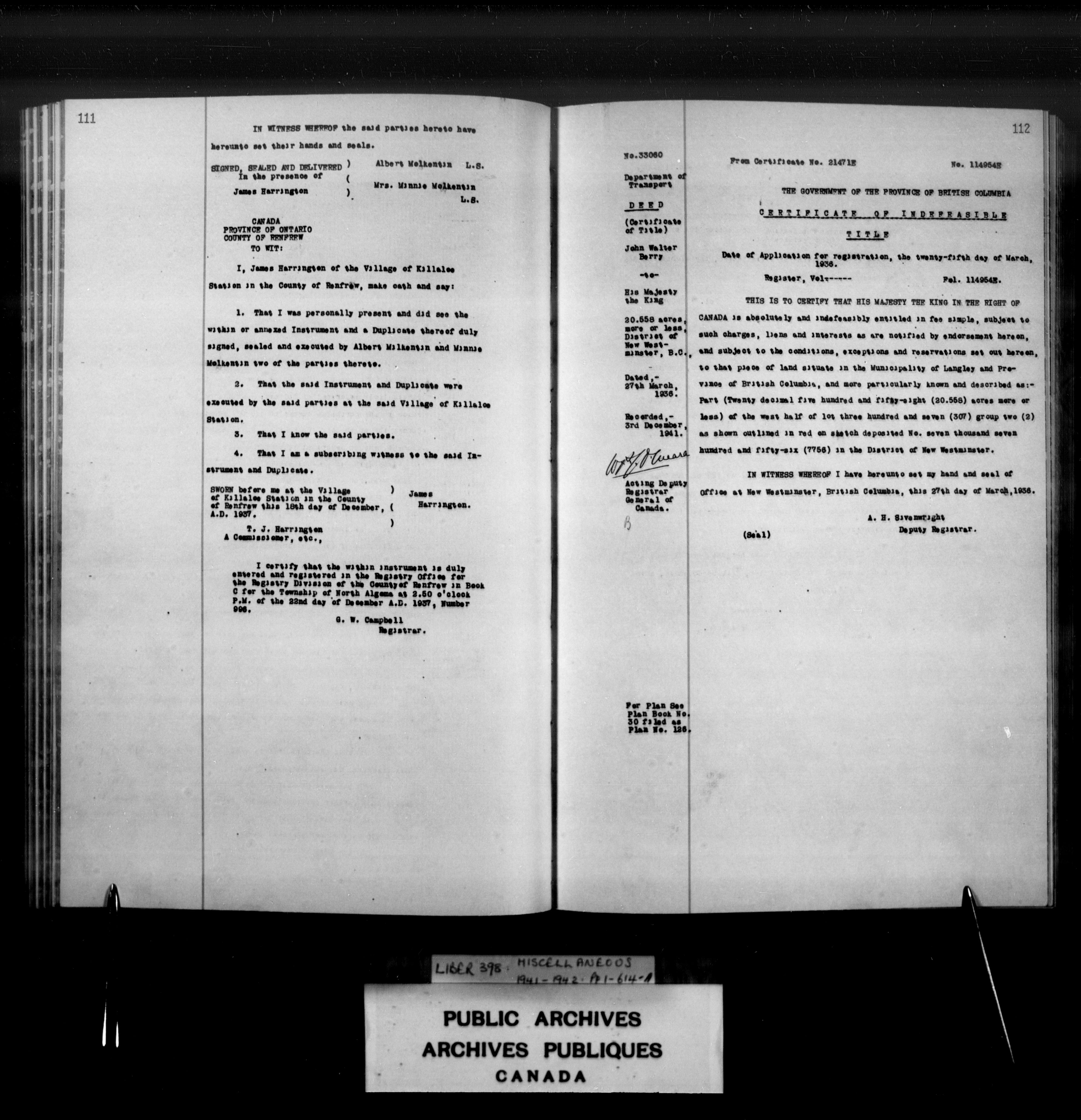 Miscellaneous registers Province of Canada and Canada, 1850-1953 - 4117