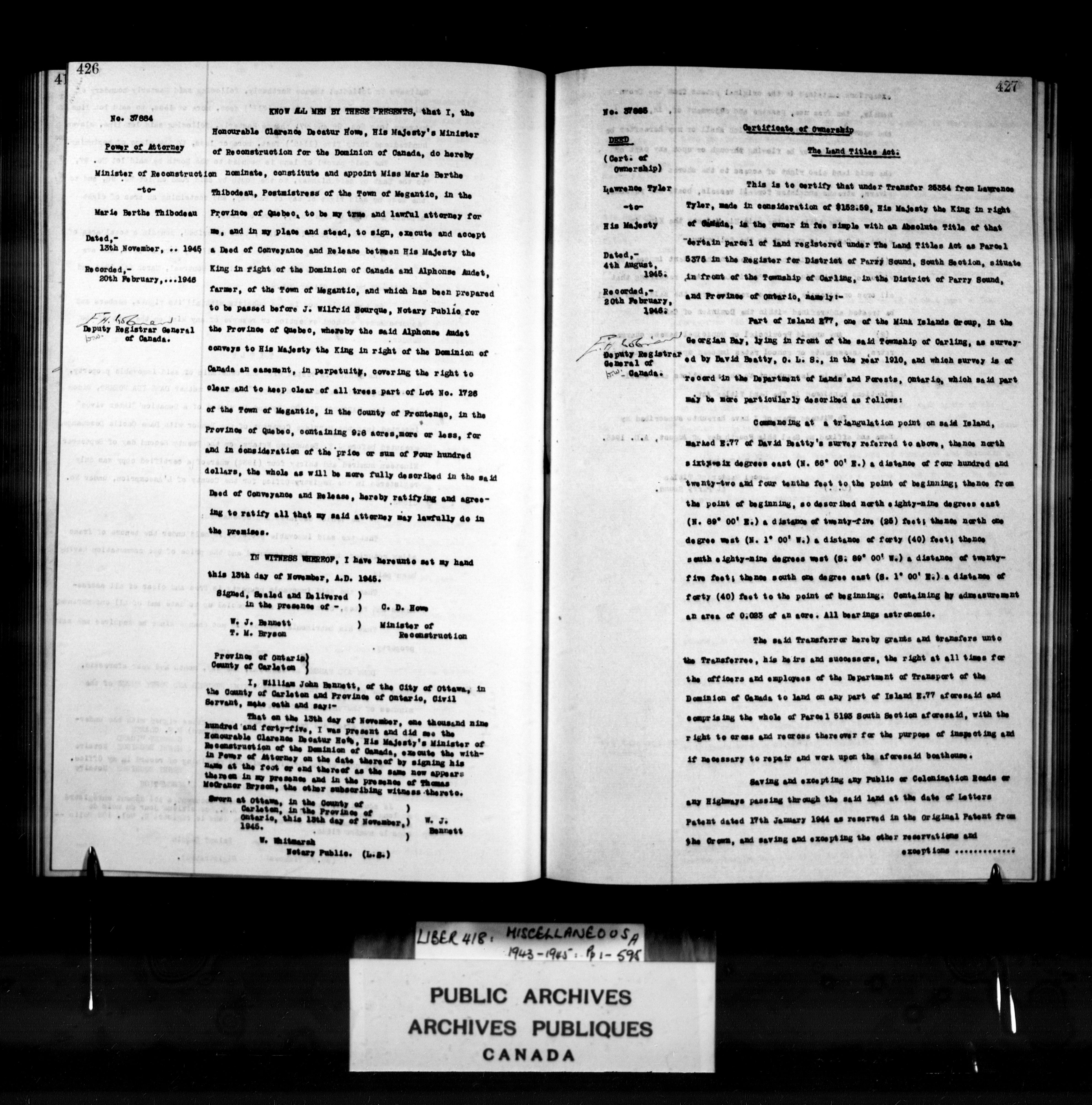 Miscellaneous registers Province of Canada and Canada, 1850-1953 - 4124