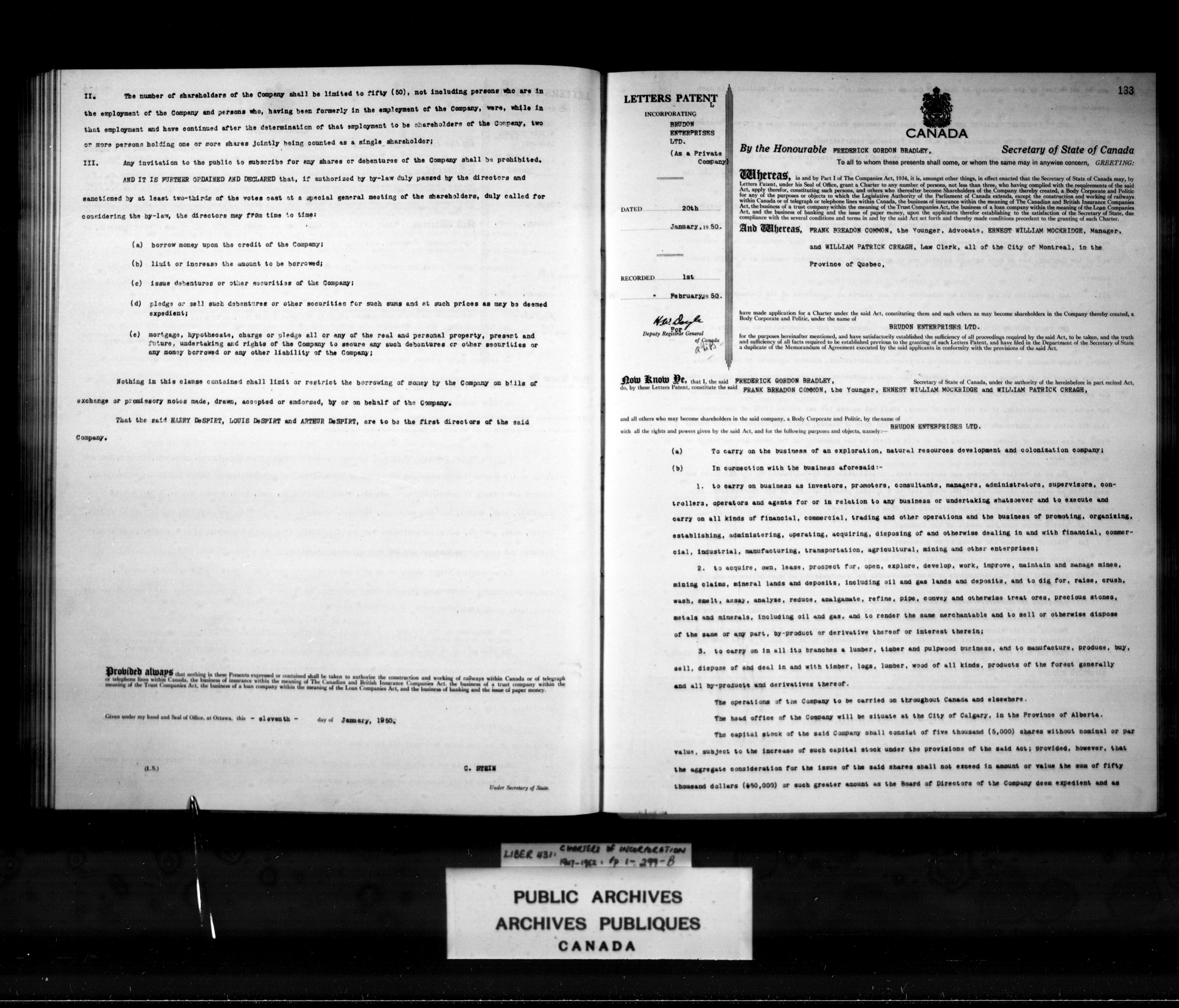 Miscellaneous registers Province of Canada and Canada, 1850-1953 - 4128