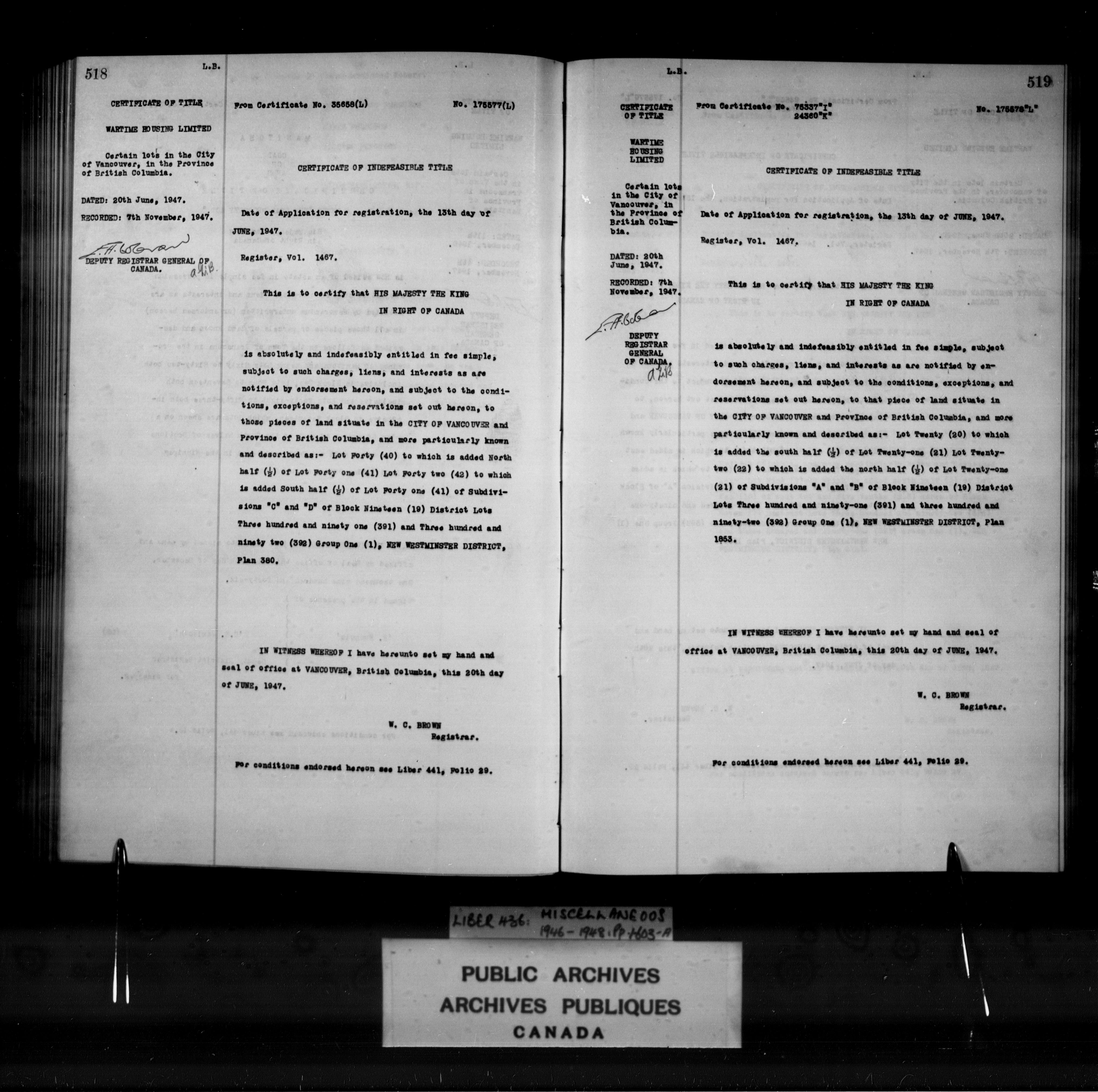 Miscellaneous registers Province of Canada and Canada, 1850-1953 - 4130