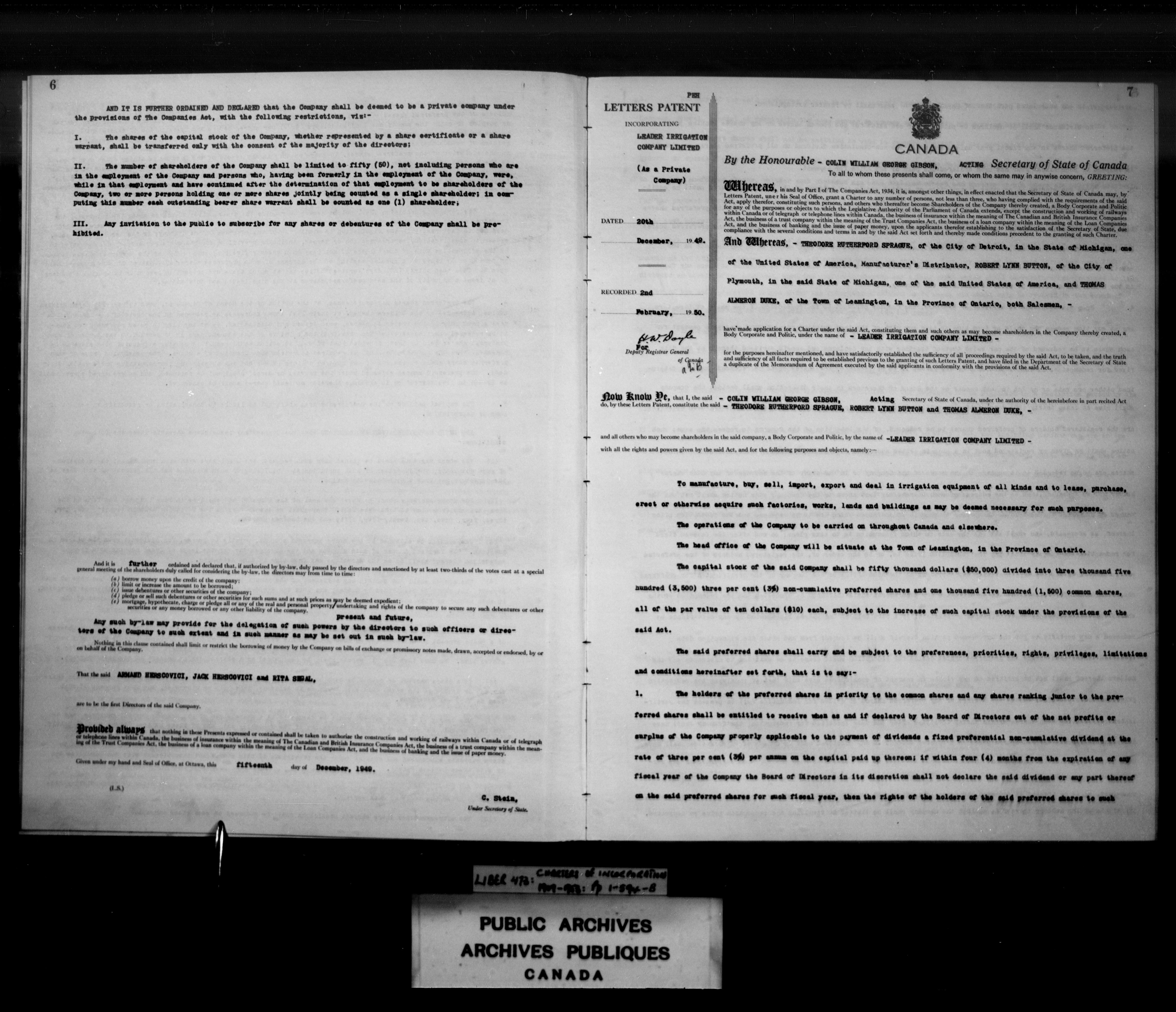 Senate summonses, Canada, 1867-1953 - 4144