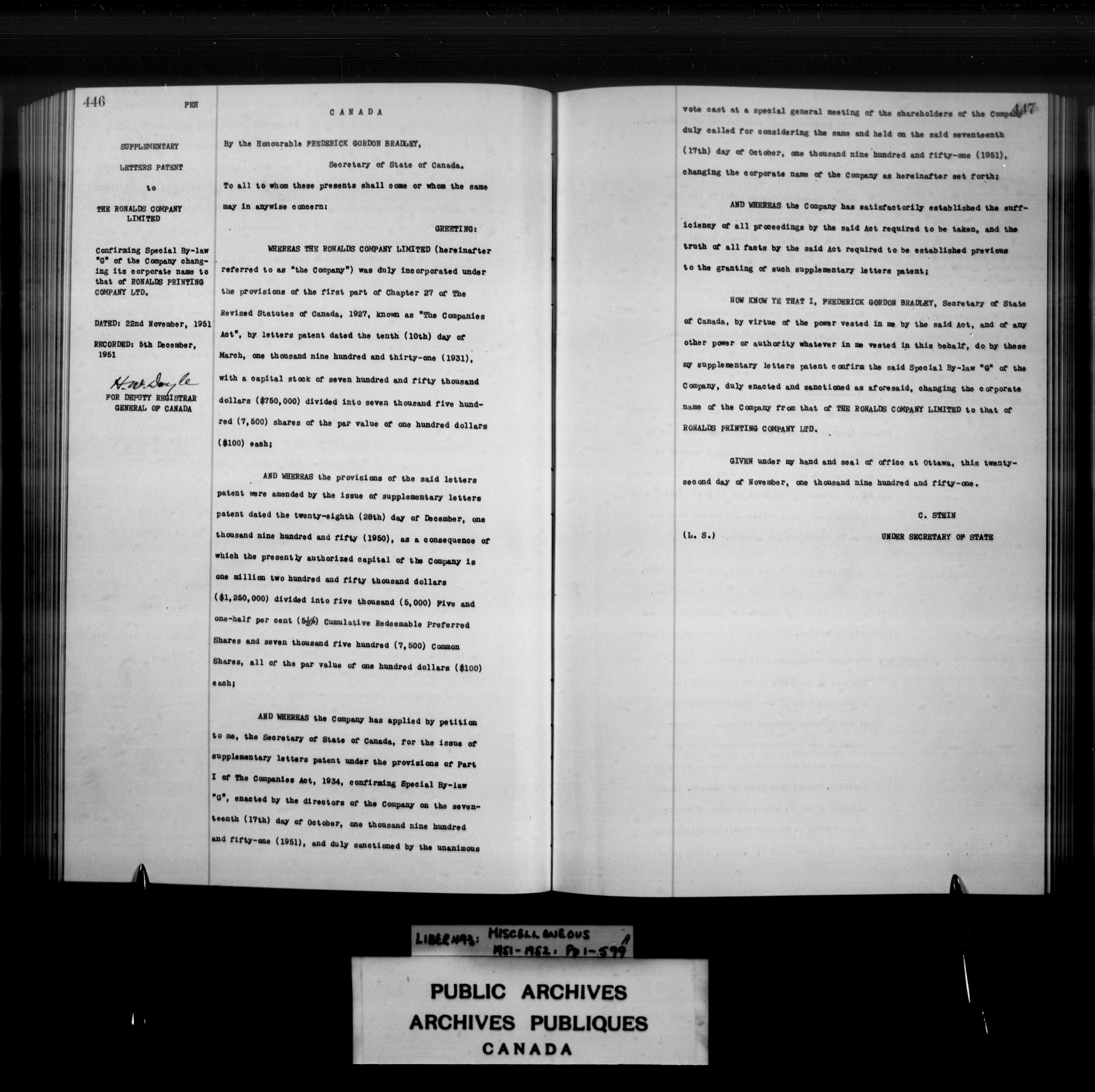 Miscellaneous registers Province of Canada and Canada, 1850-1953 - 4149
