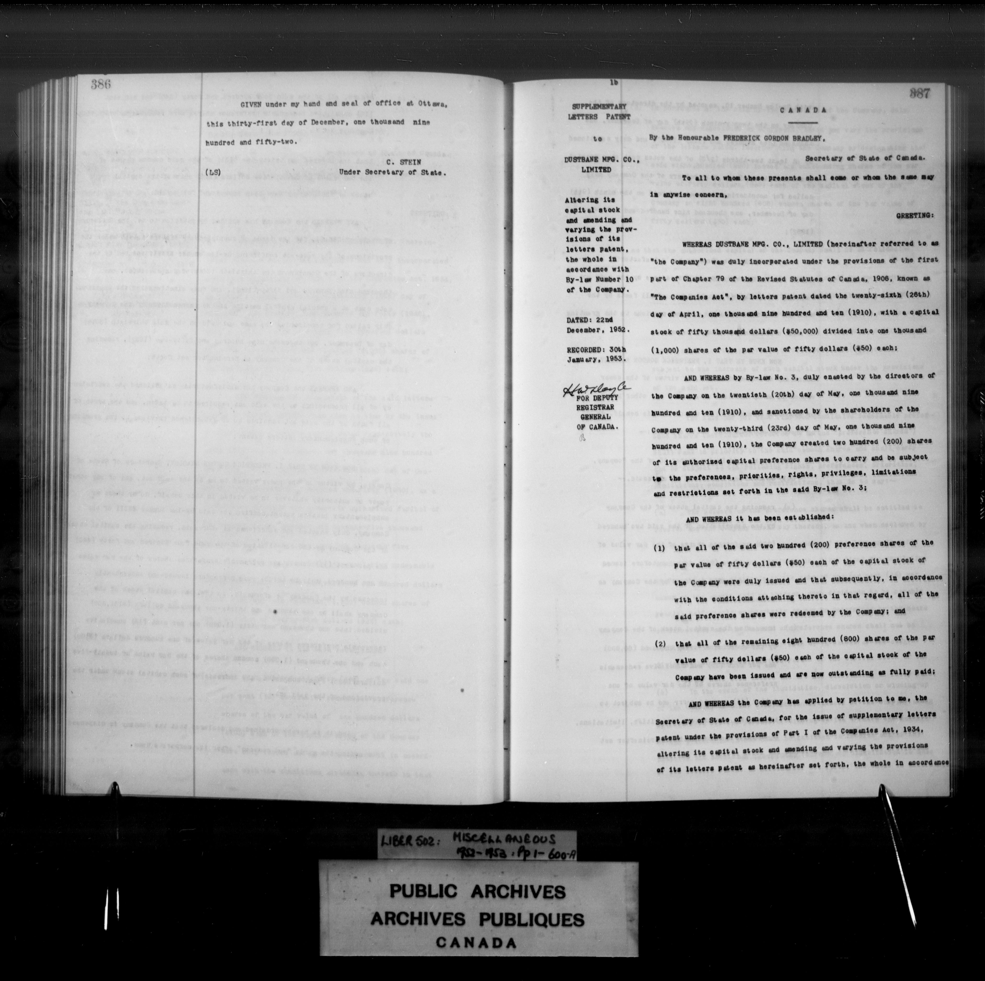 Miscellaneous registers Province of Canada and Canada, 1850-1953 - 4153