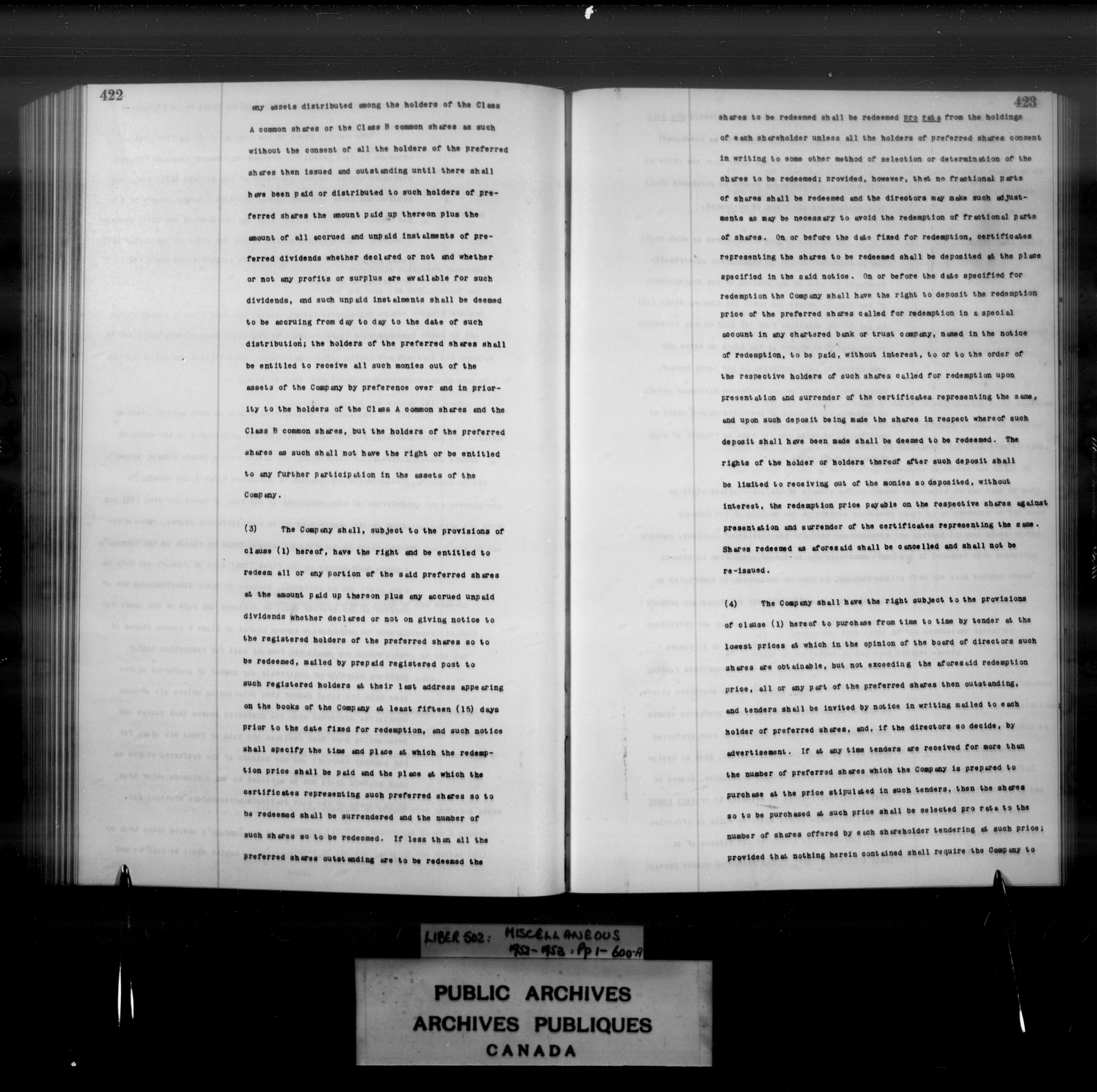 Miscellaneous registers Province of Canada and Canada, 1850-1953 - 4153