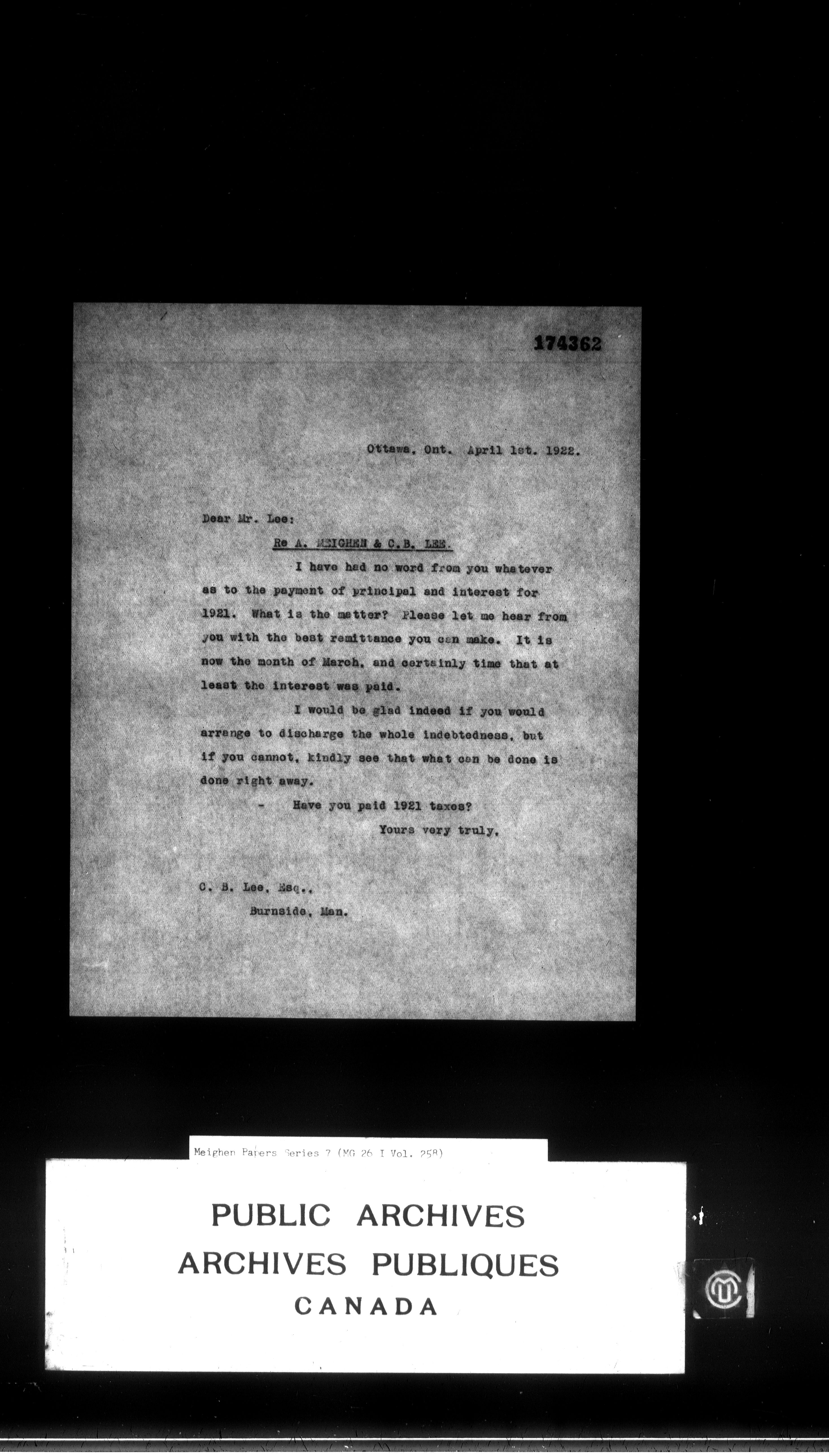 Arthur Meighen : Personal finances - 4175