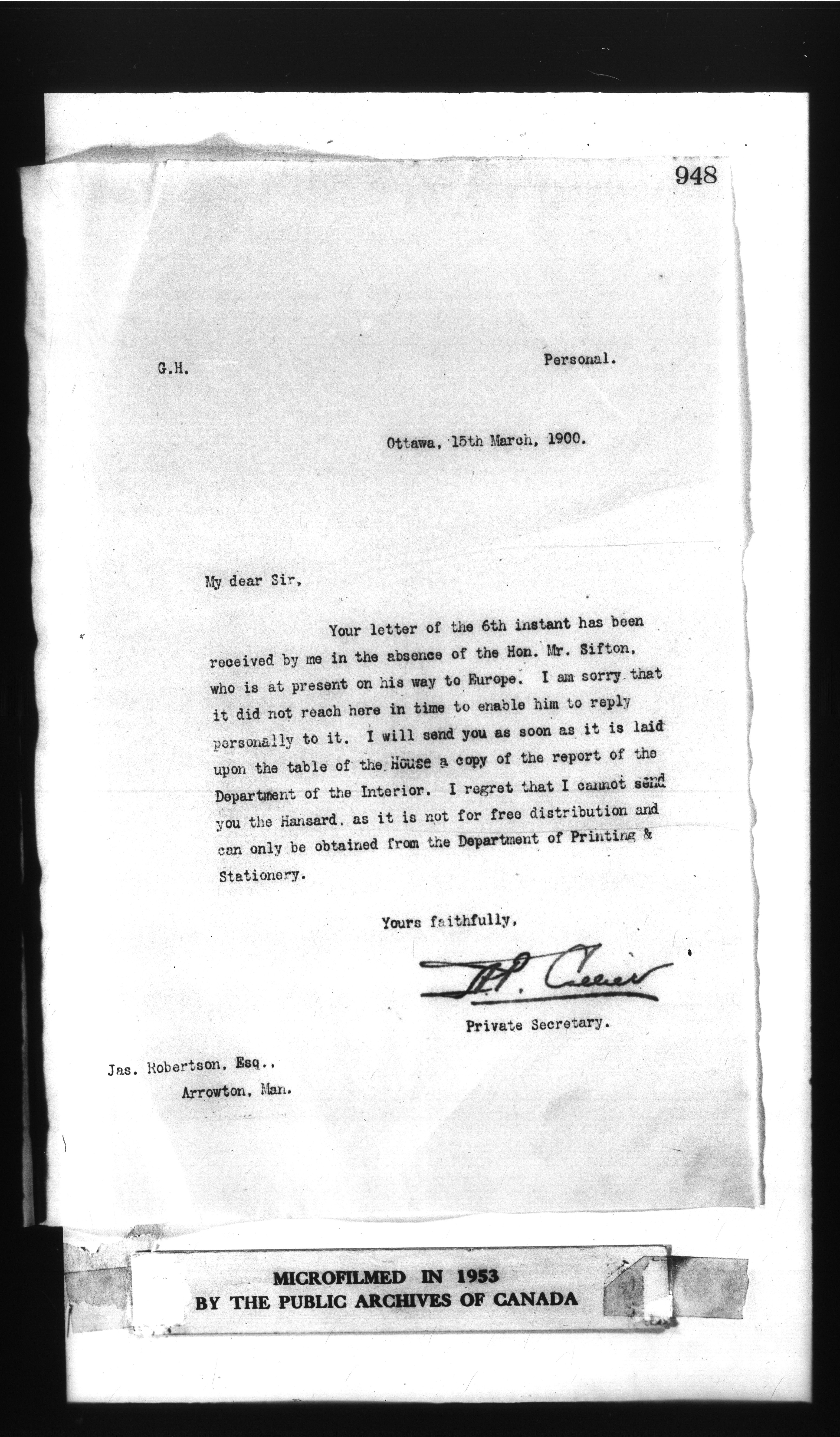 Sir Clifford Sifton Papers - 418