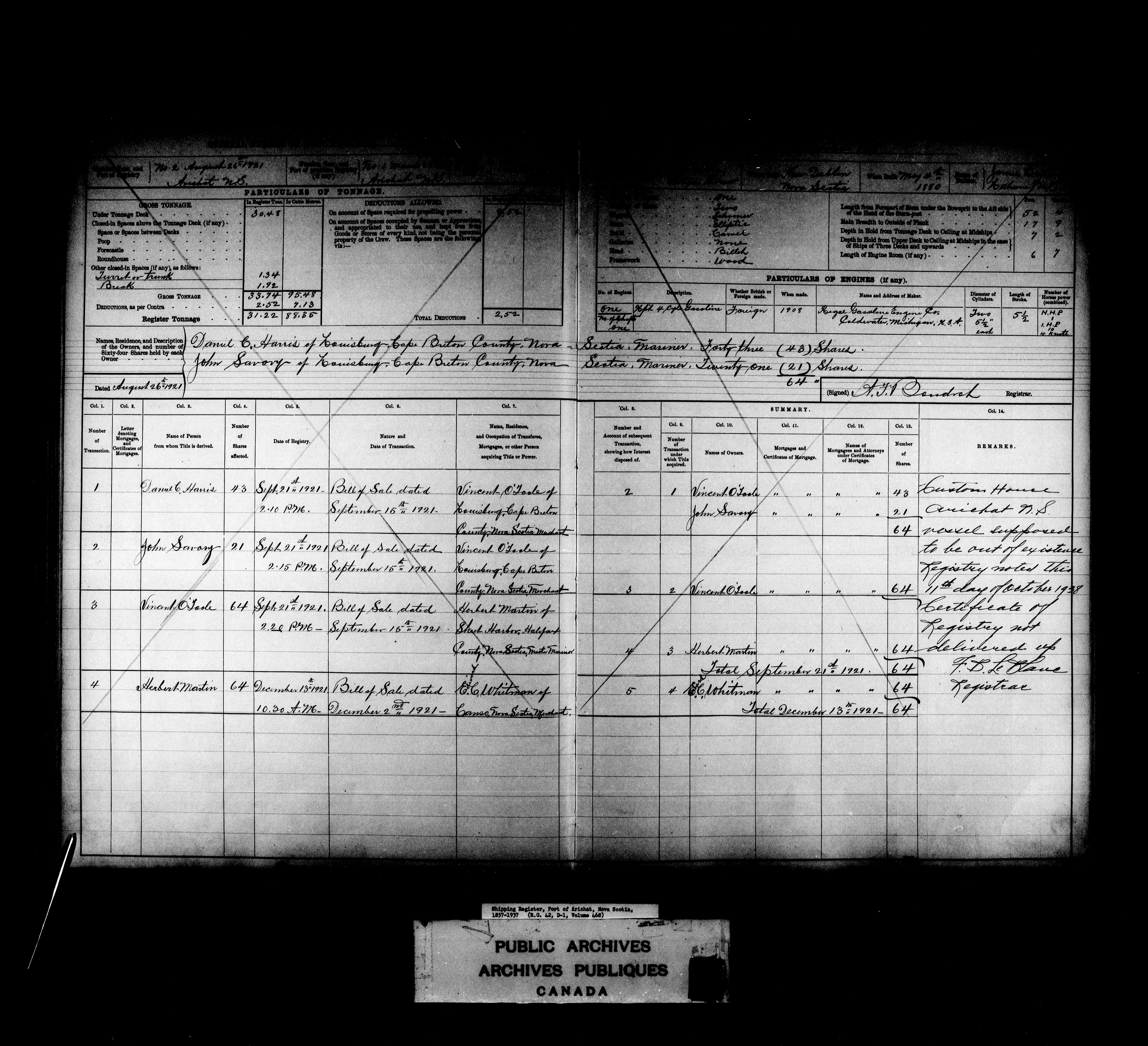 Arichat [Nova Scotia] Registrar of Shipping, 1839-1938 : C-4185