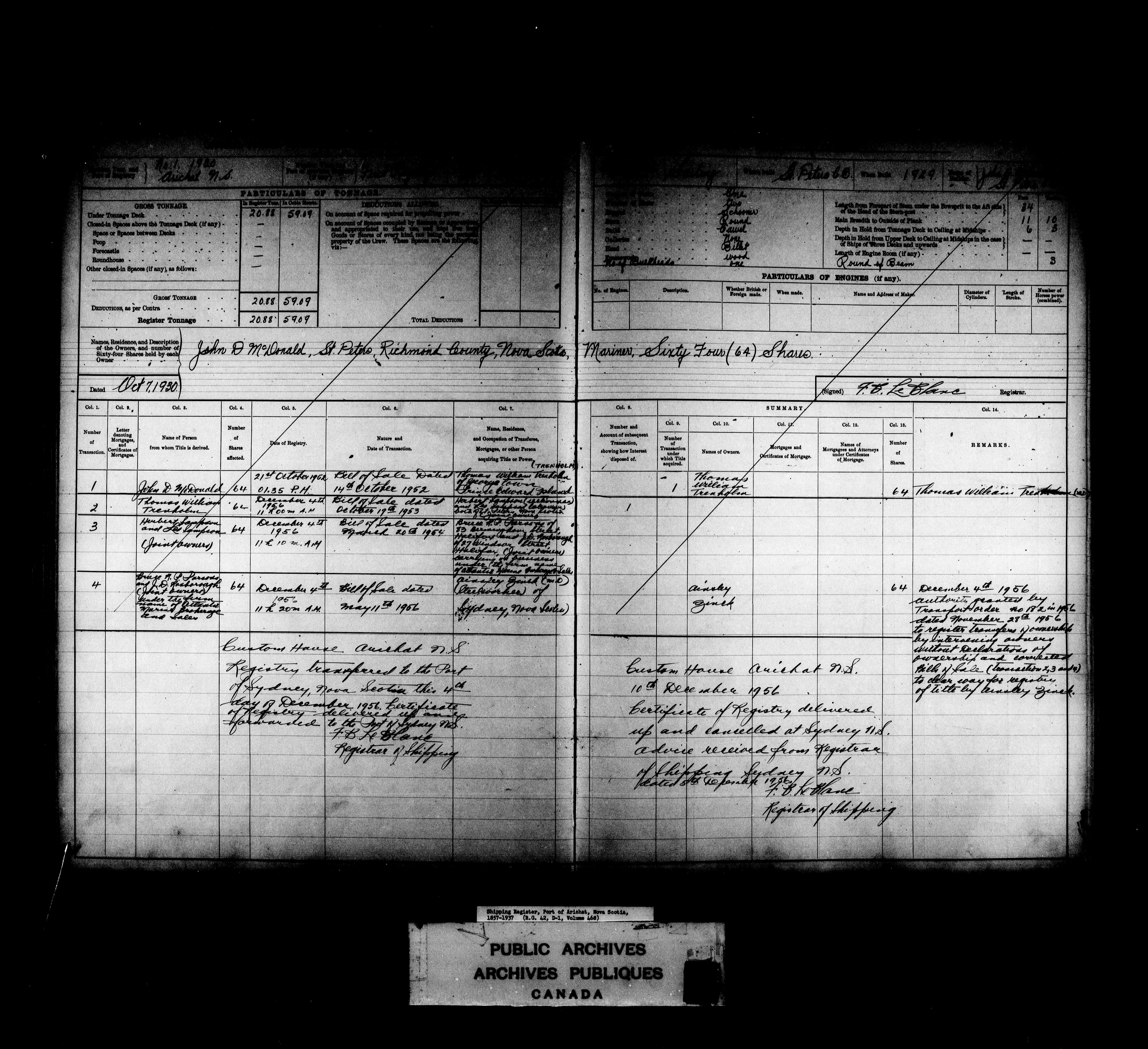 Arichat [Nova Scotia] Registrar of Shipping, 1839-1938 : C-4185