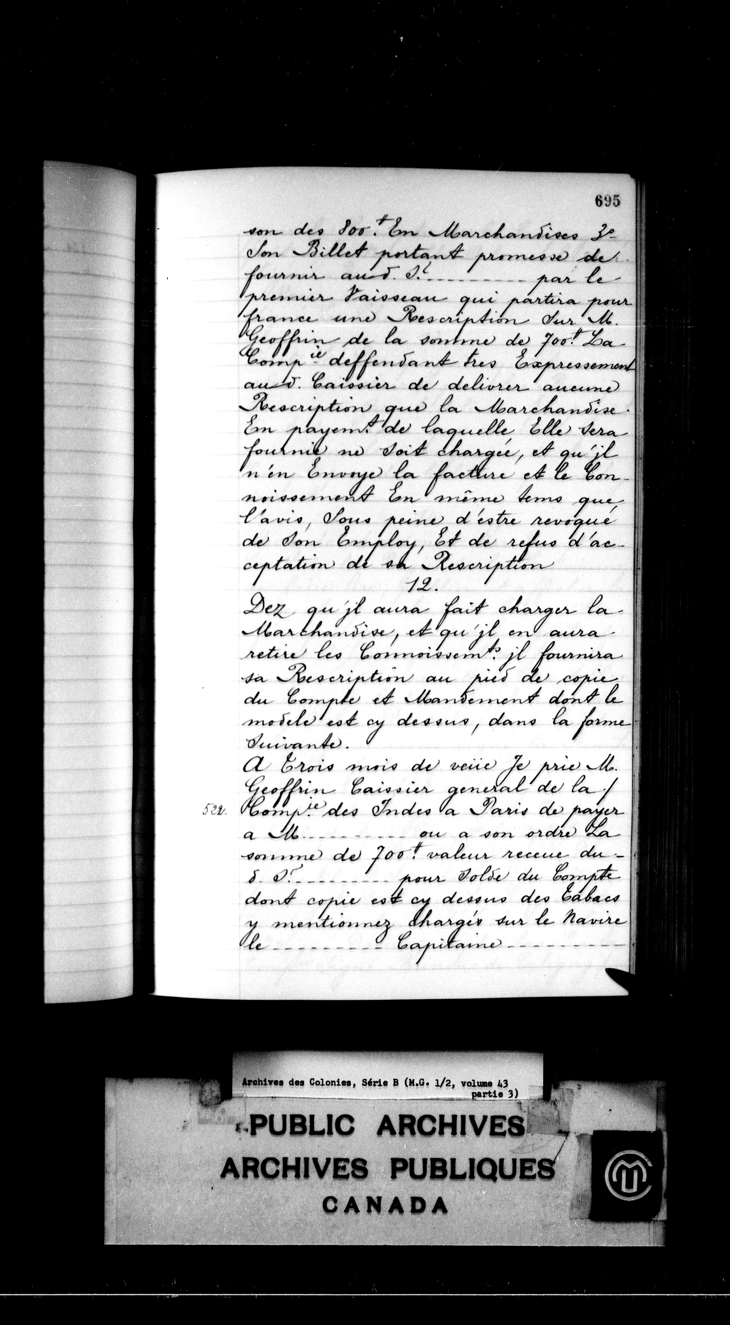France: Archives des Colonies, Séries B, Lettres envoyées, 1663-1789 - 4186