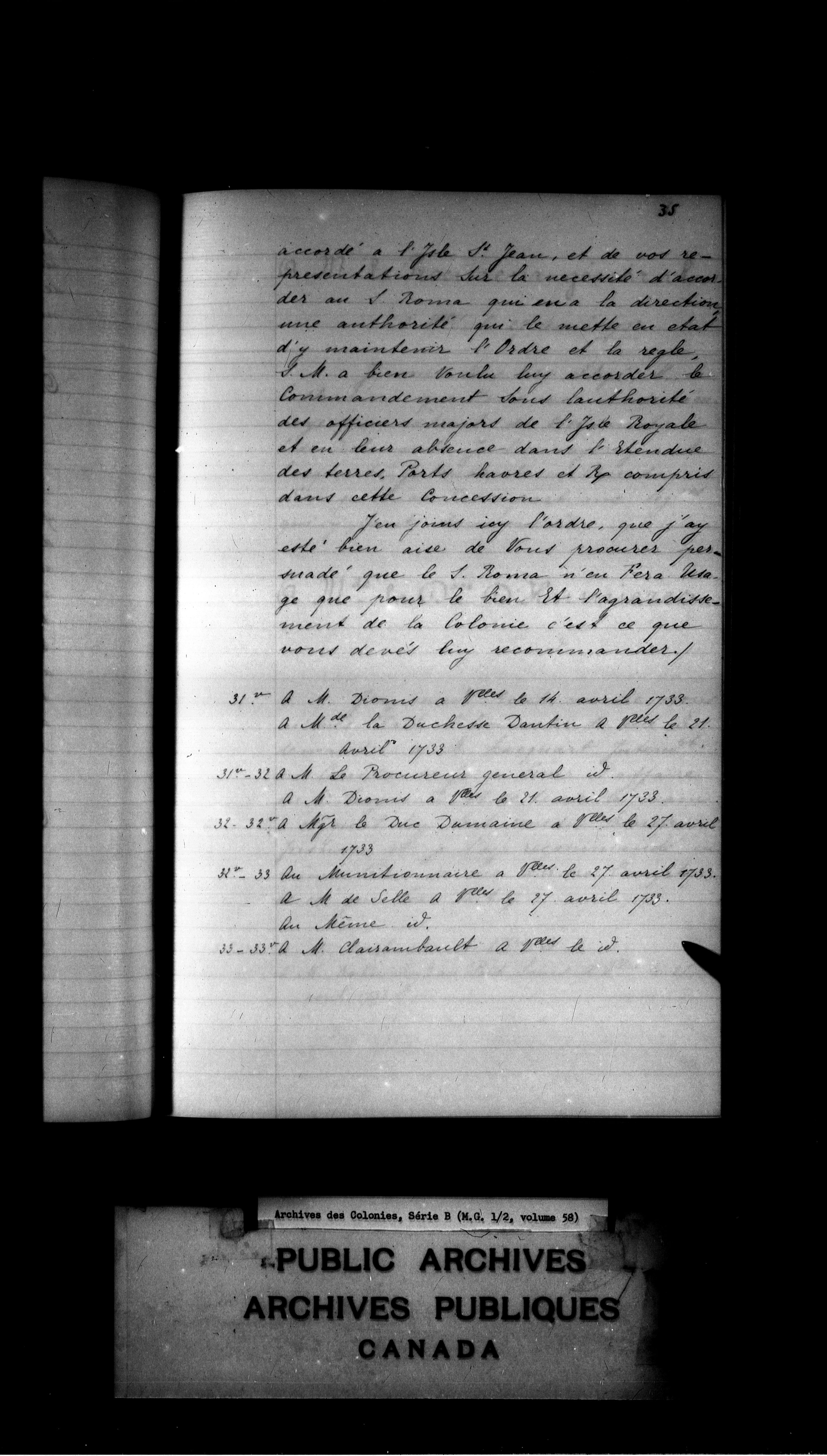 France: Archives des Colonies, Séries B, Lettres envoyées, 1663-1789 - 4191