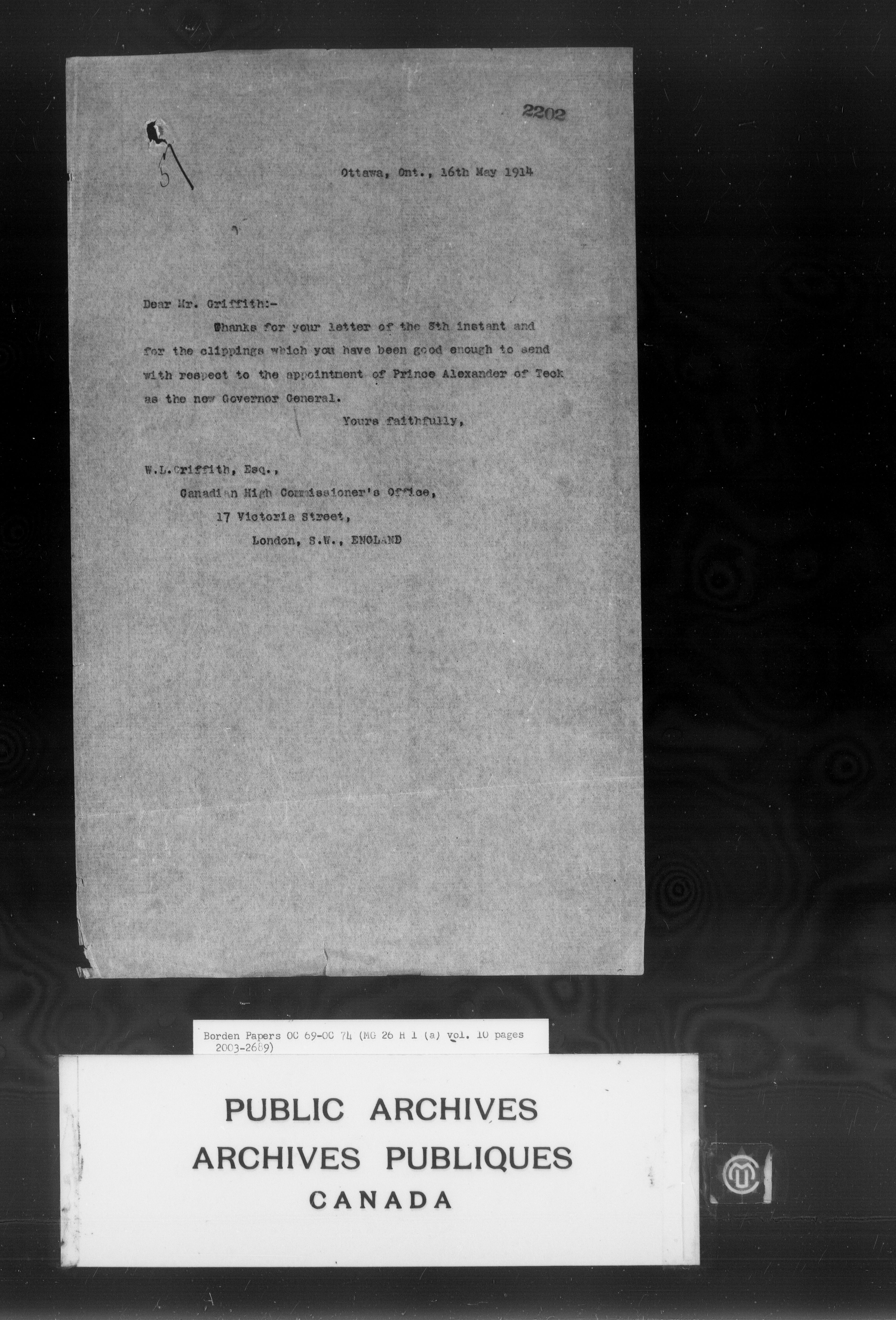 Sir Robert Borden fonds - 4201