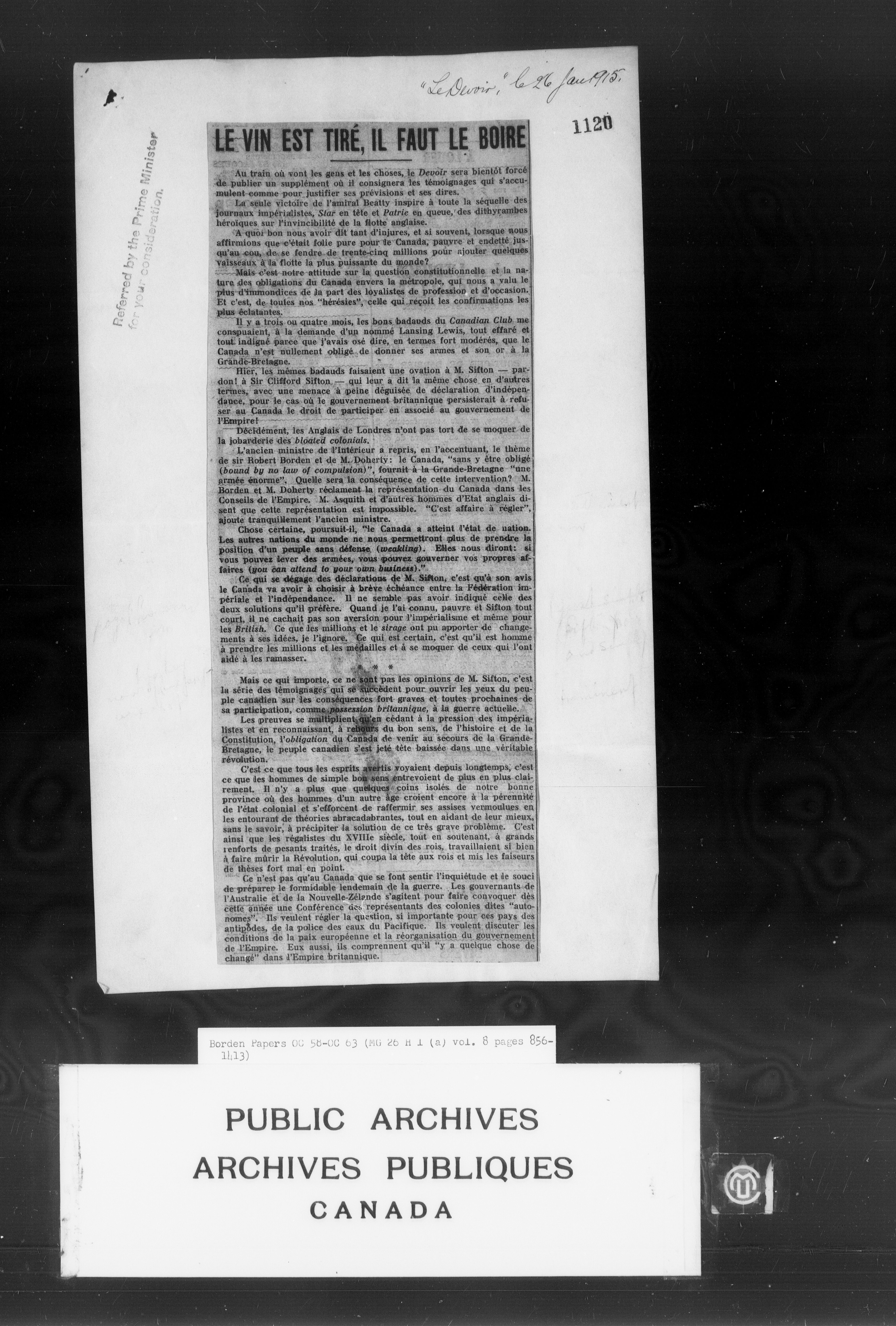 Sir Robert Borden fonds - 4201