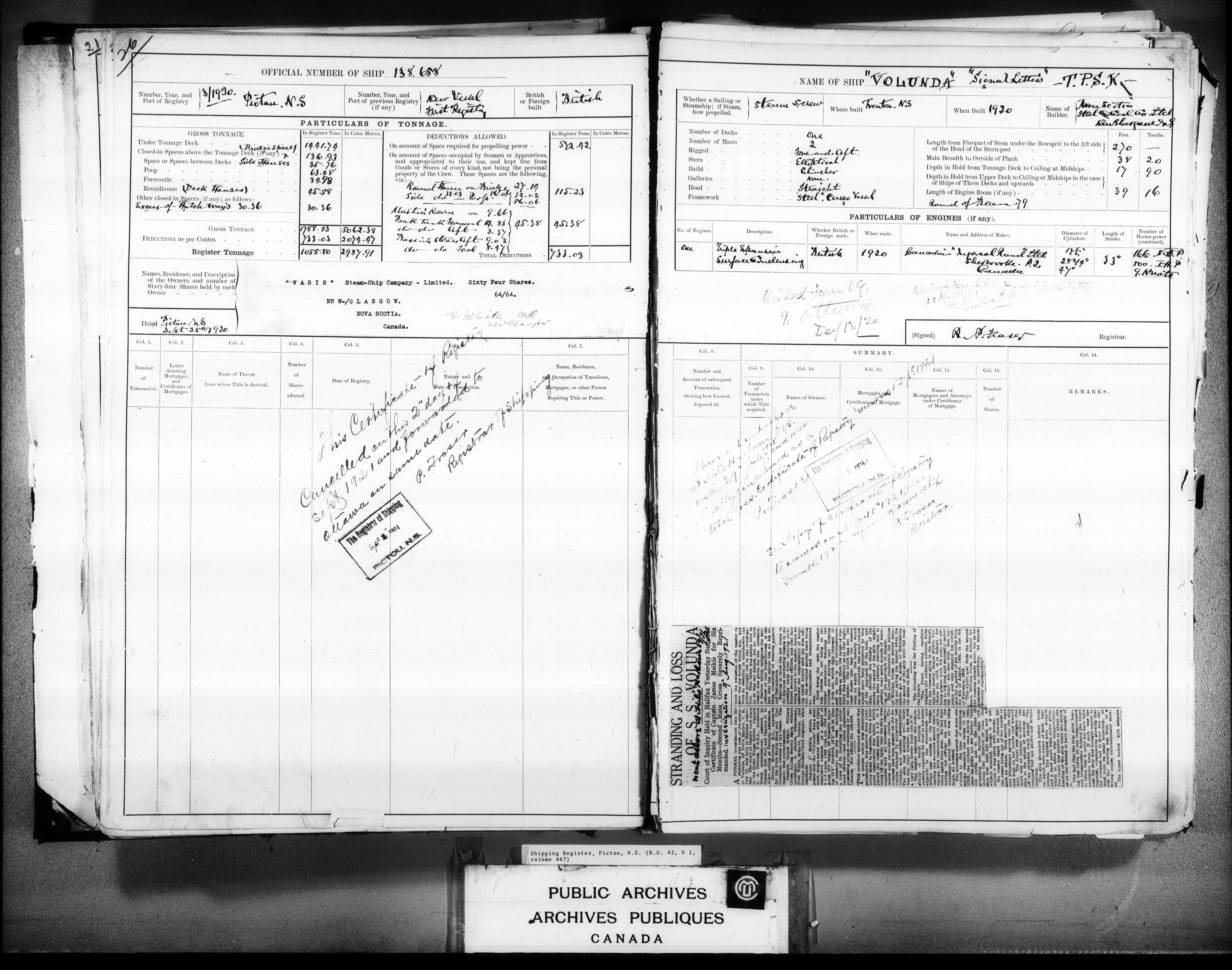 Pictou, N.S. Shipping Registers - 4225