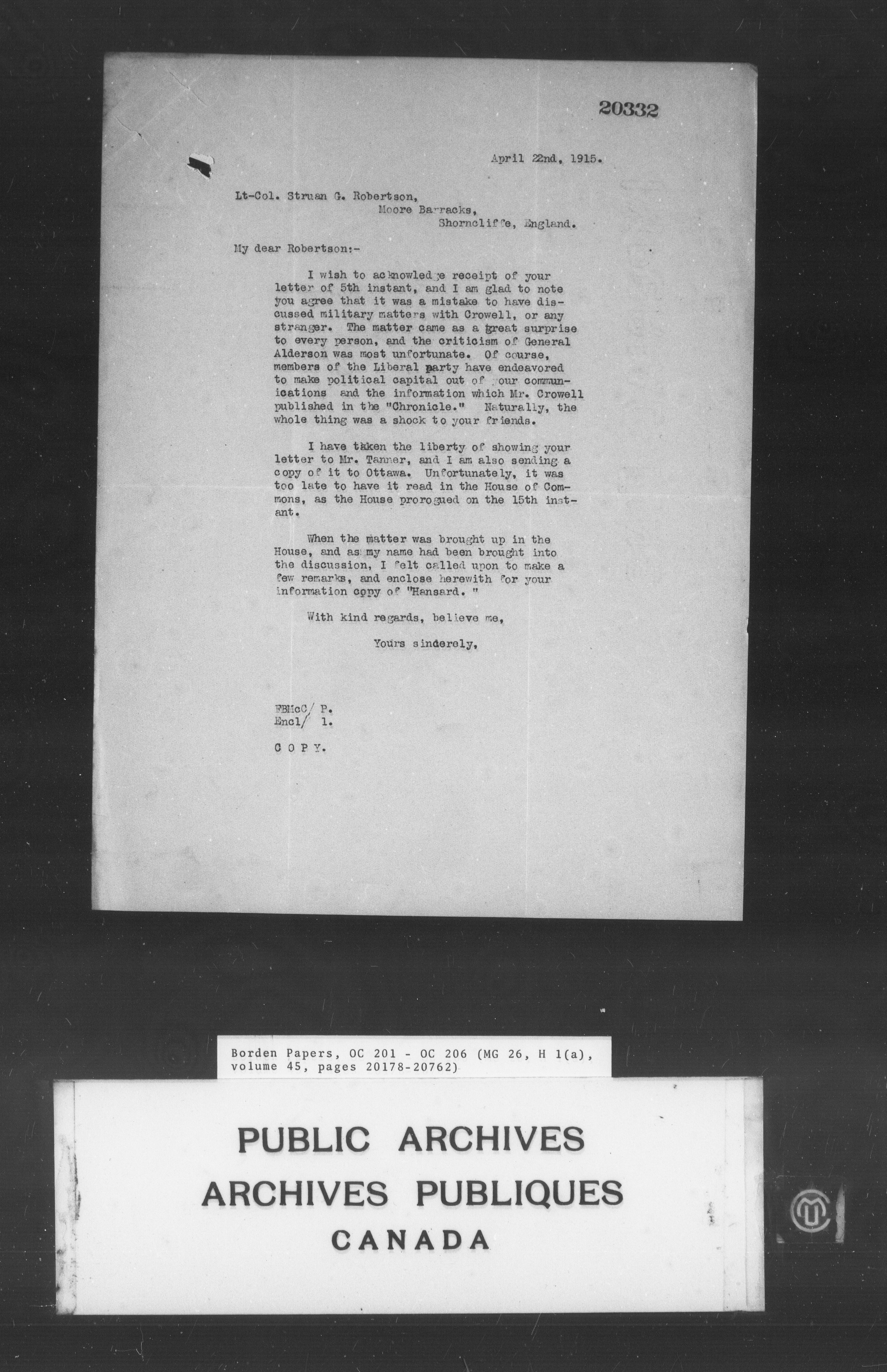 Sir Robert Borden fonds - 4235