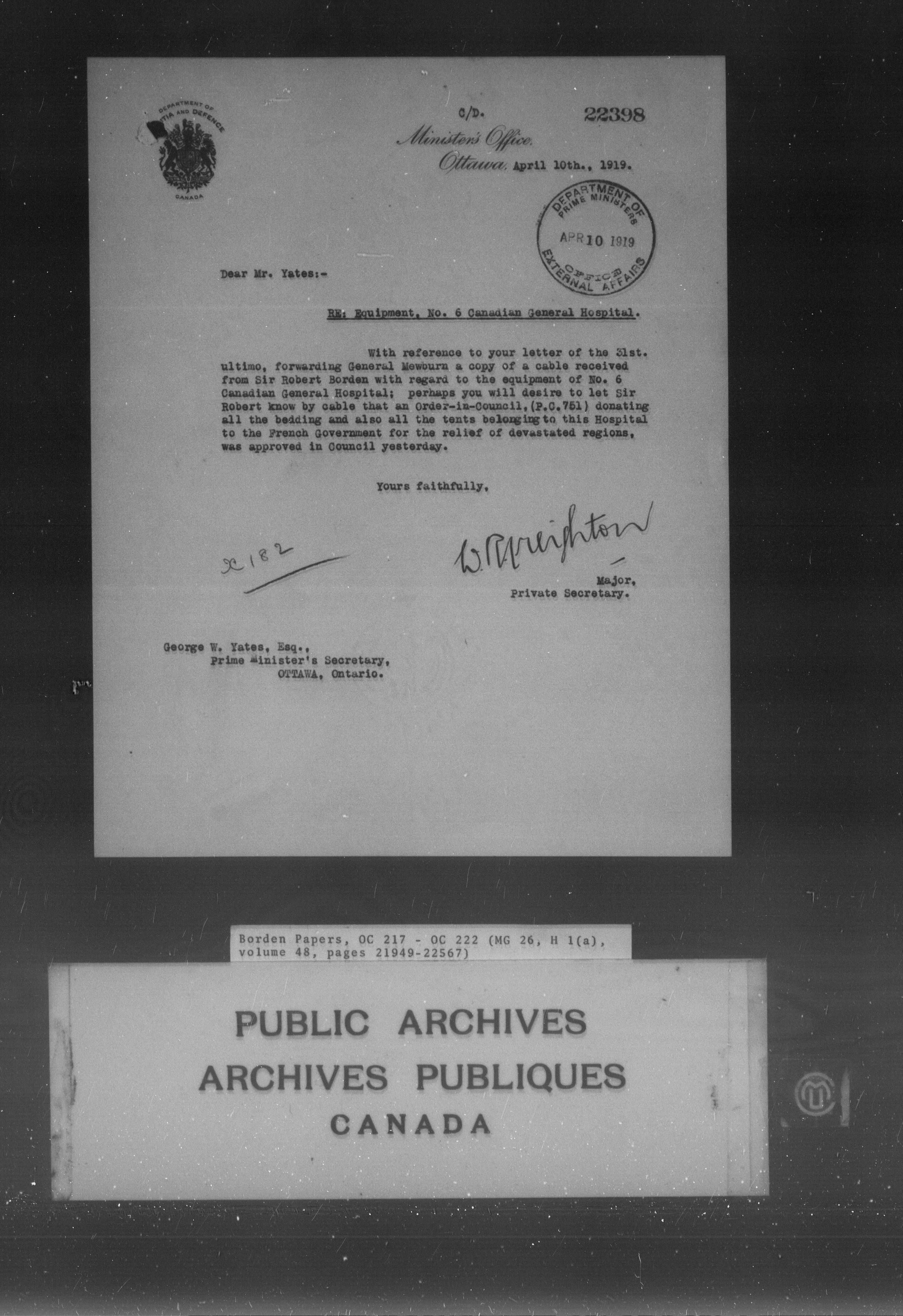 Sir Robert Borden fonds - 4237