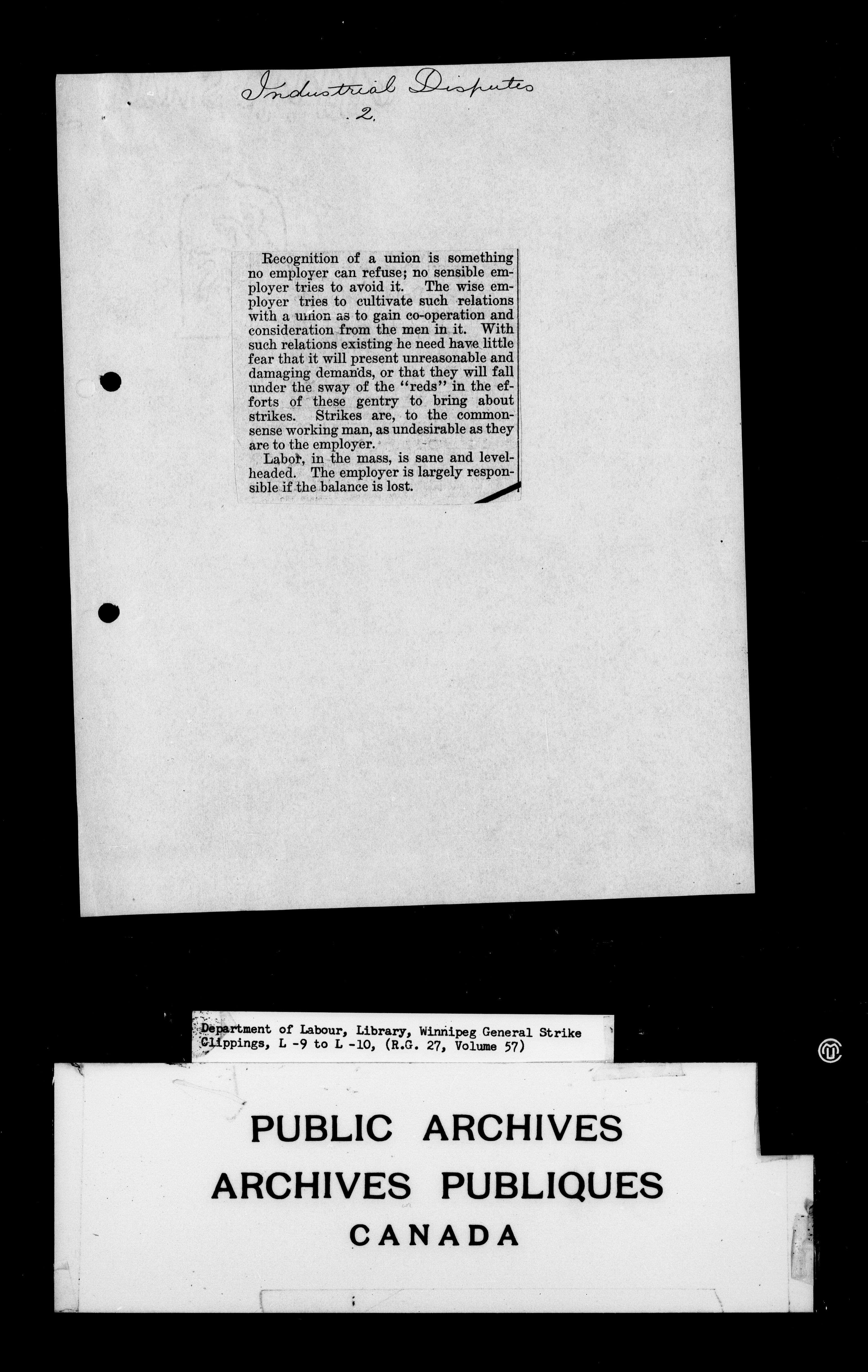 Department of Labour : Winnipeg General Strike Clippings - 4246