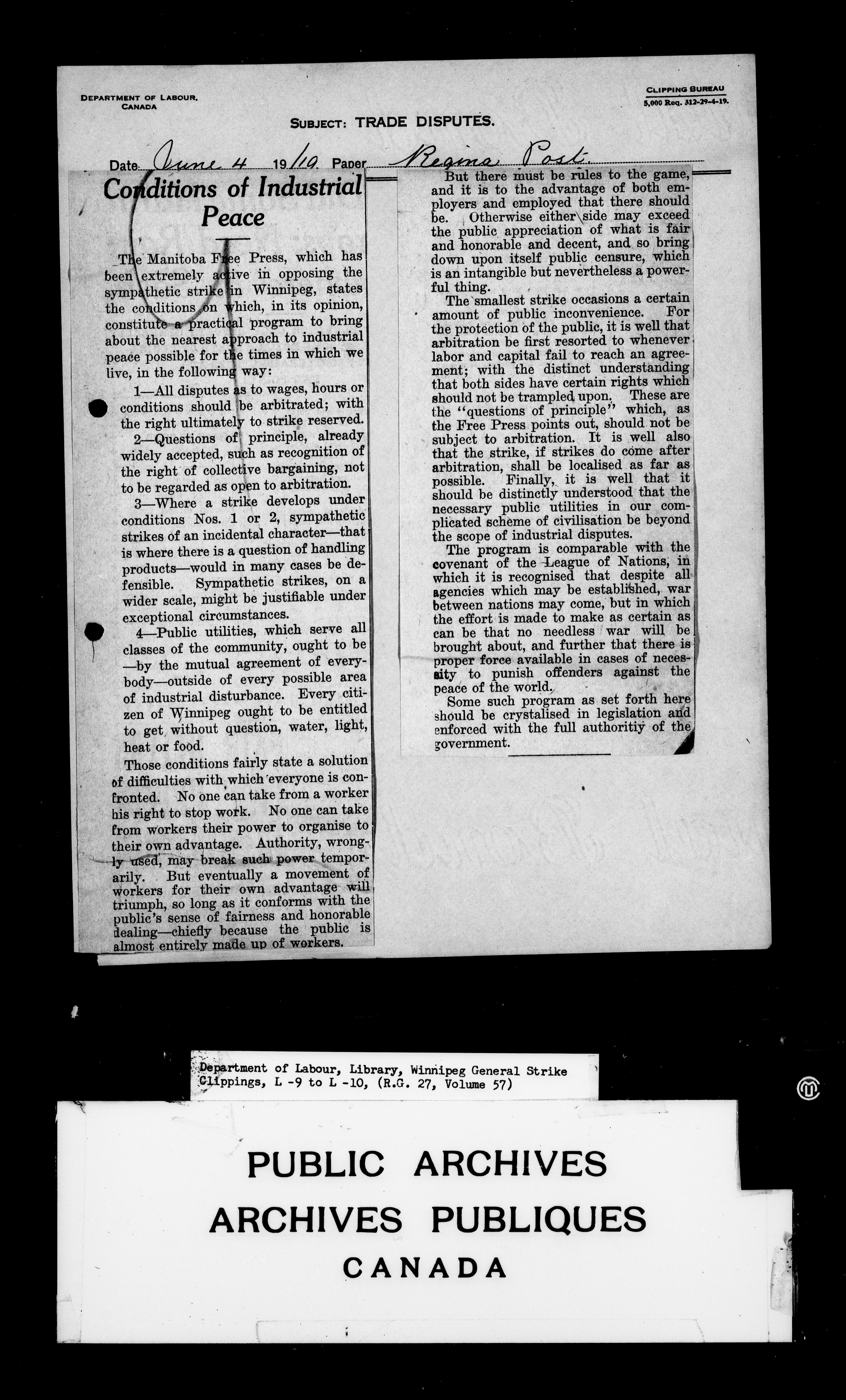 Department of Labour : Winnipeg General Strike Clippings - 4246