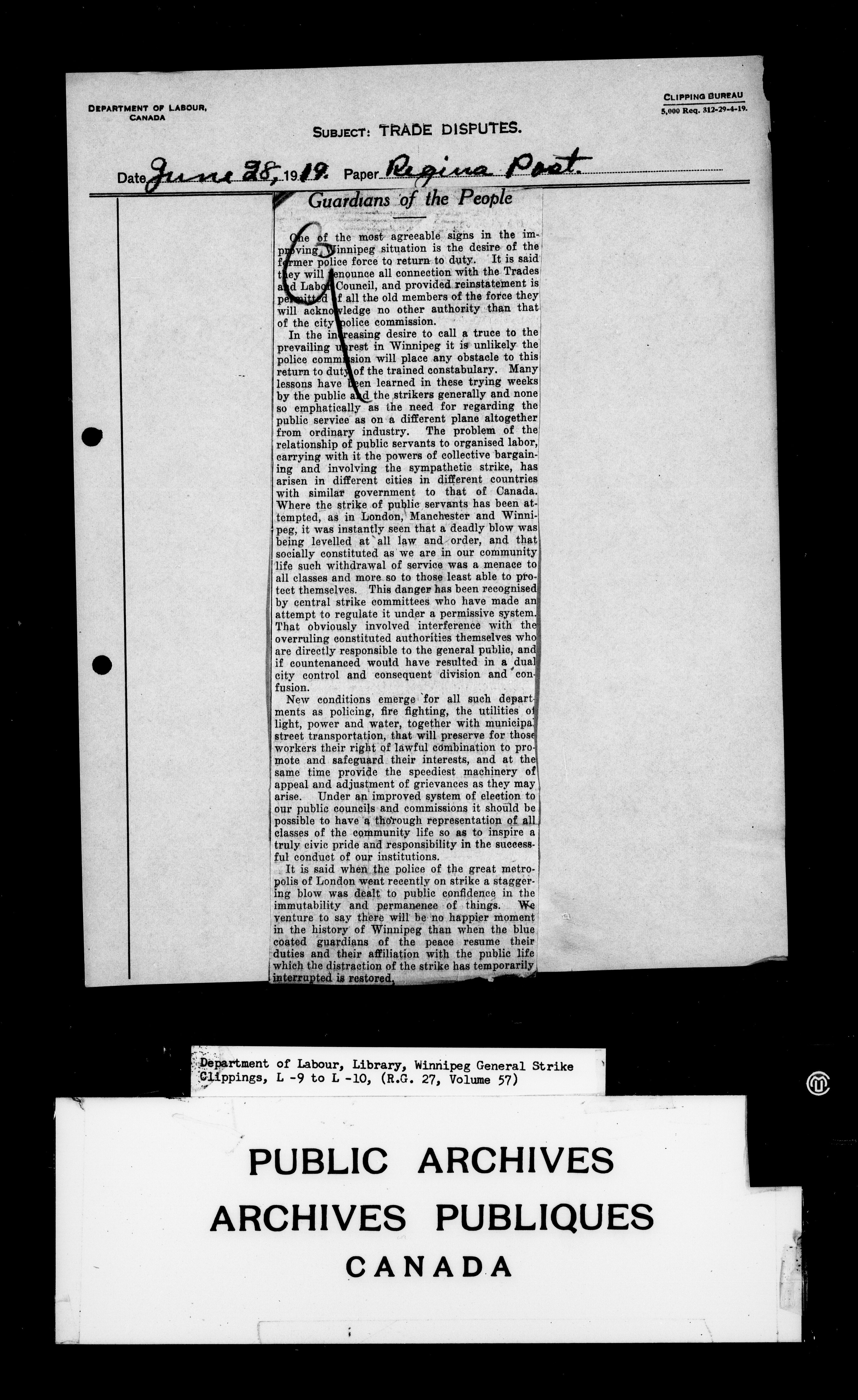 Department of Labour : Winnipeg General Strike Clippings - 4246