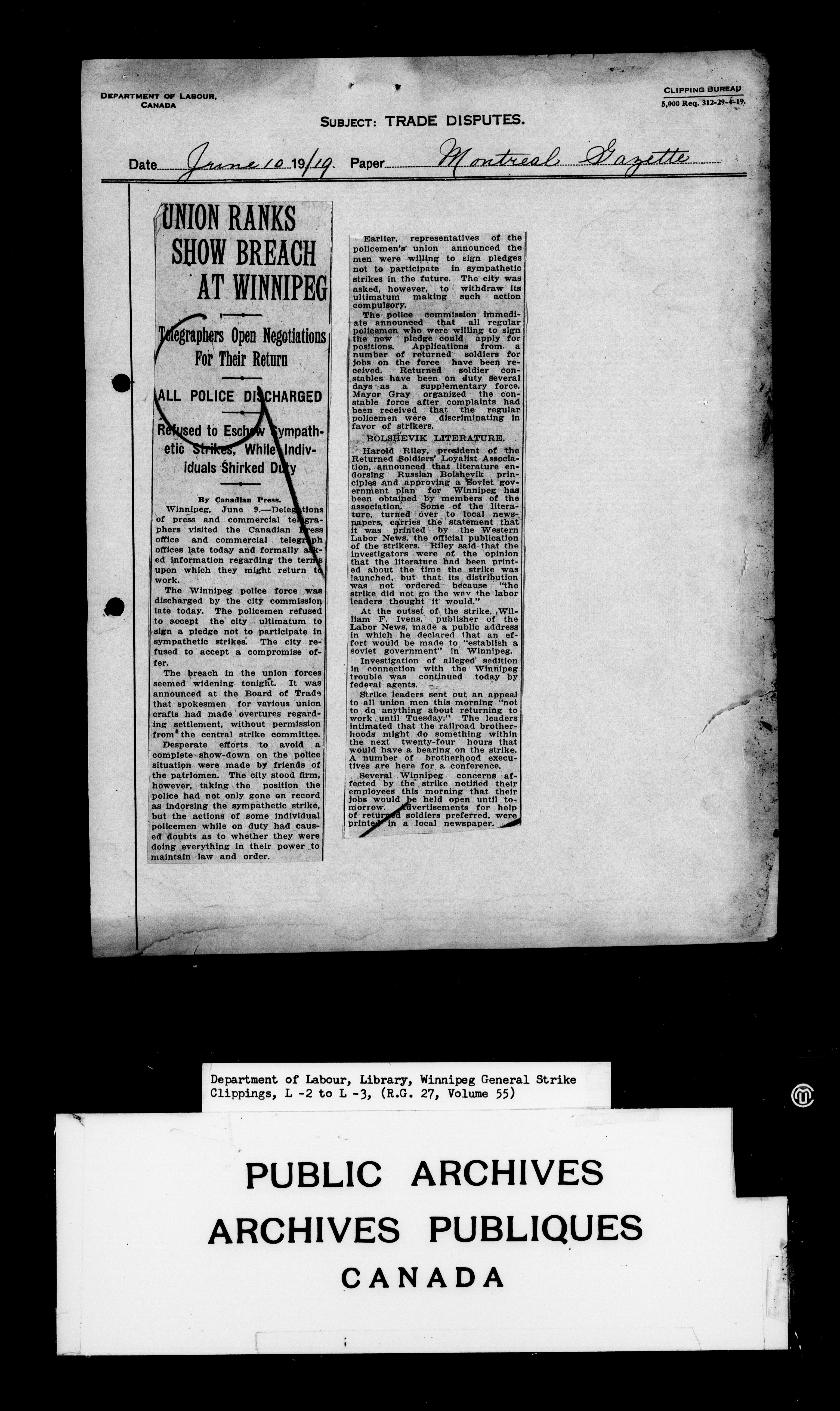 Department of Labour : Winnipeg General Strike Clippings - 4246