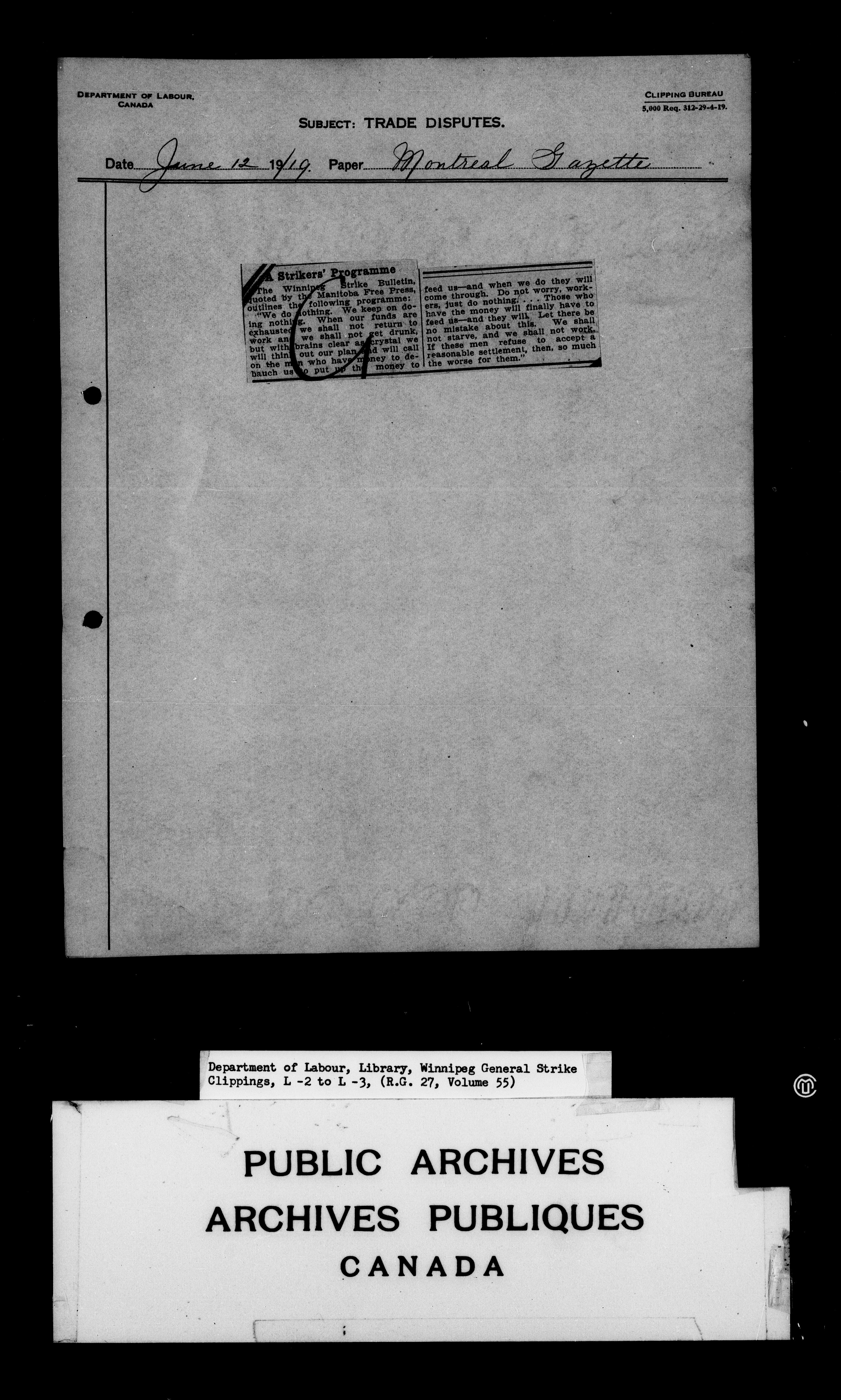 Department of Labour : Winnipeg General Strike Clippings - 4246