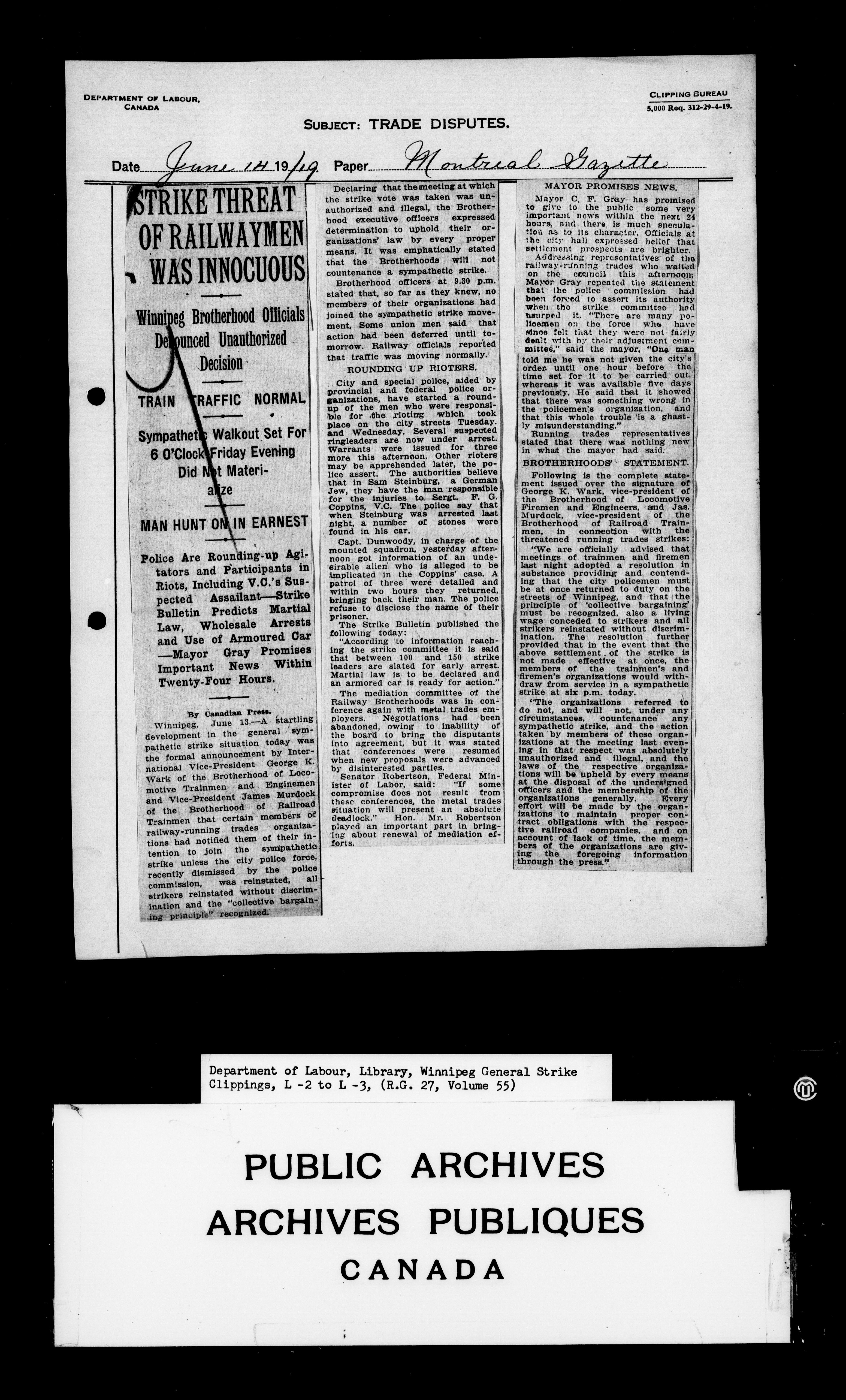 Department of Labour : Winnipeg General Strike Clippings - 4246