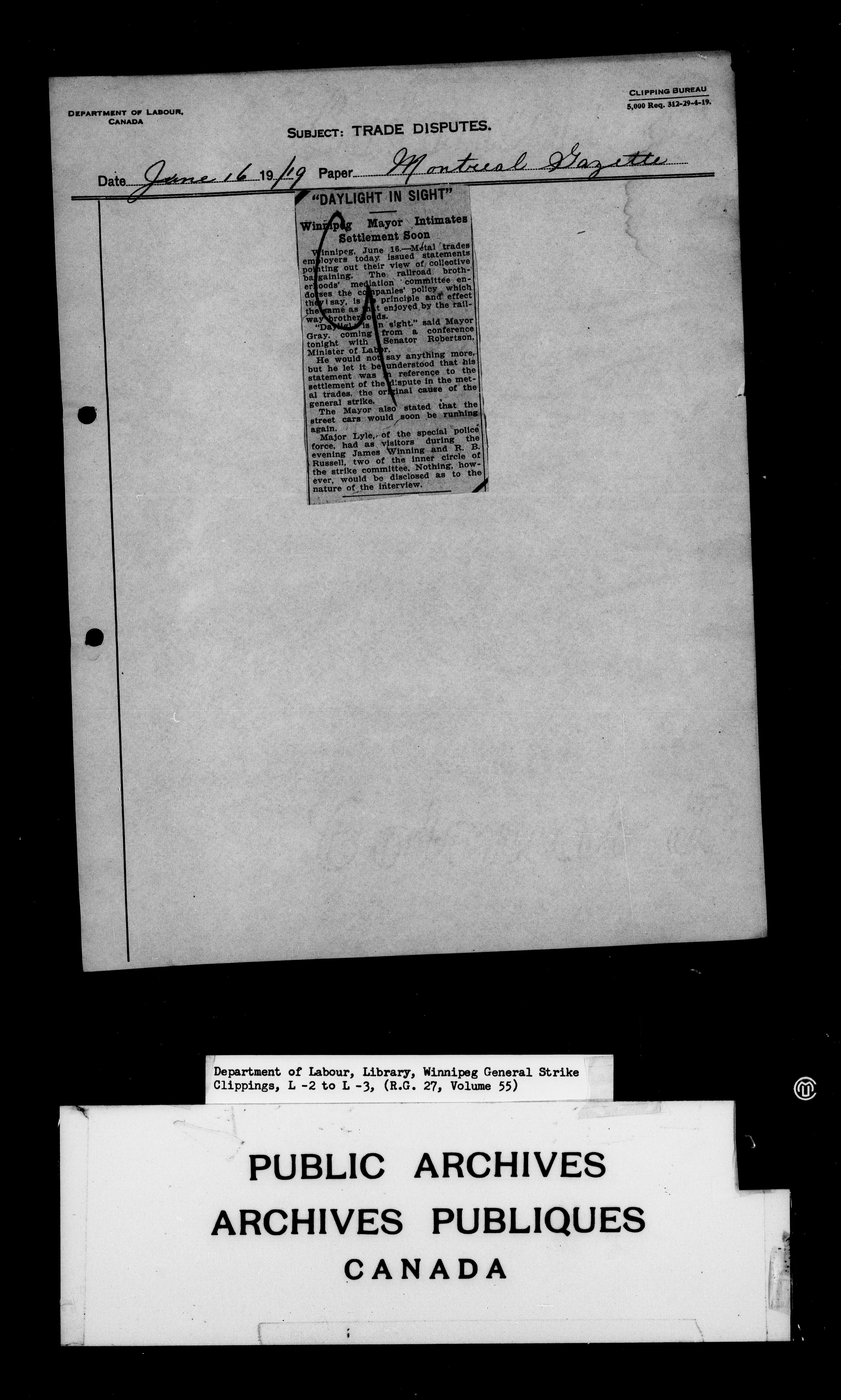 Department of Labour : Winnipeg General Strike Clippings - 4246