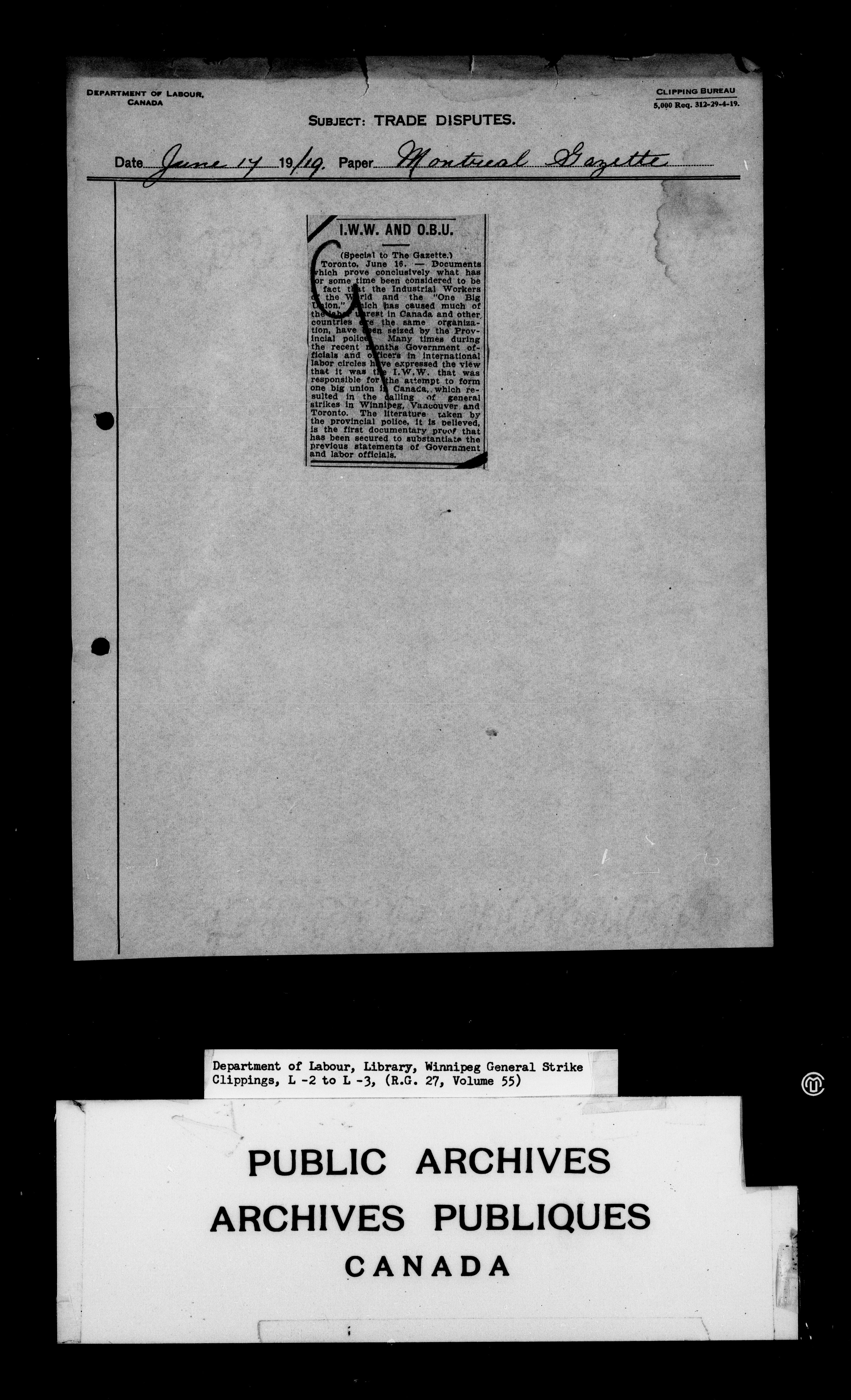 Department of Labour : Winnipeg General Strike Clippings - 4246