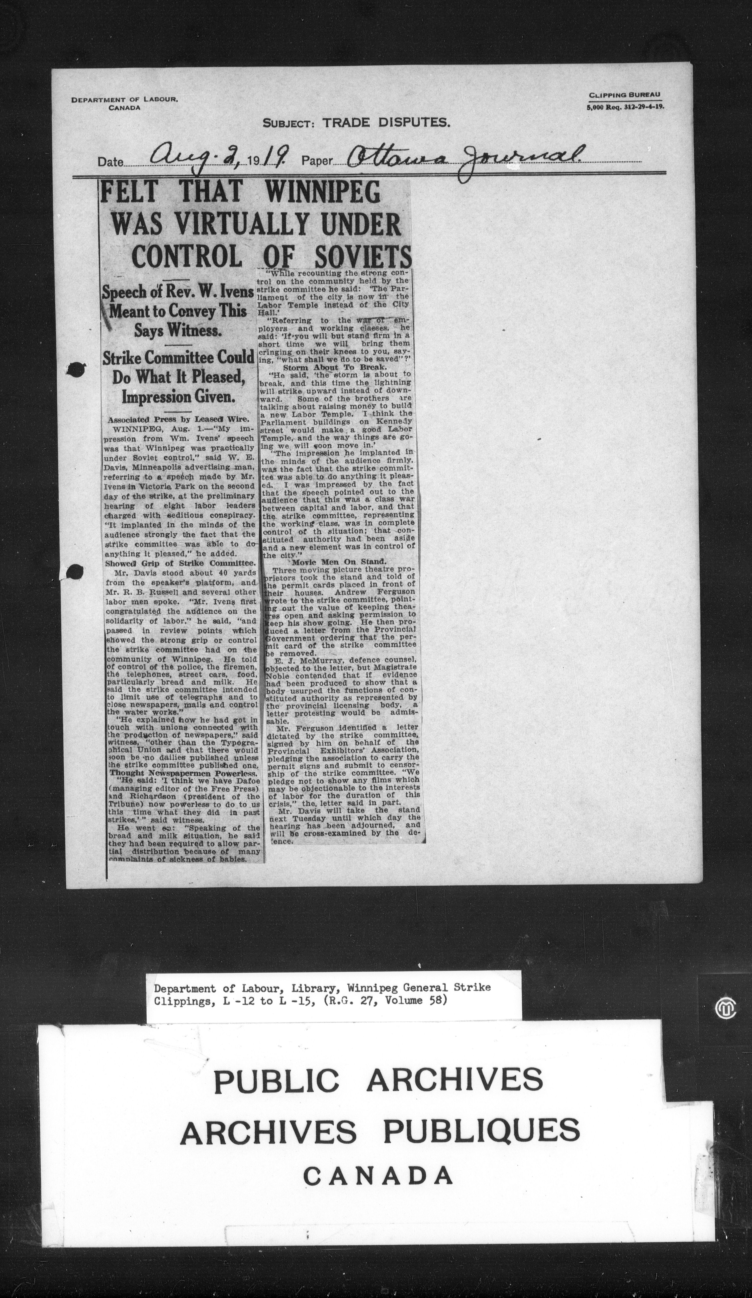 Department of Labour : Winnipeg General Strike Clippings - 4247