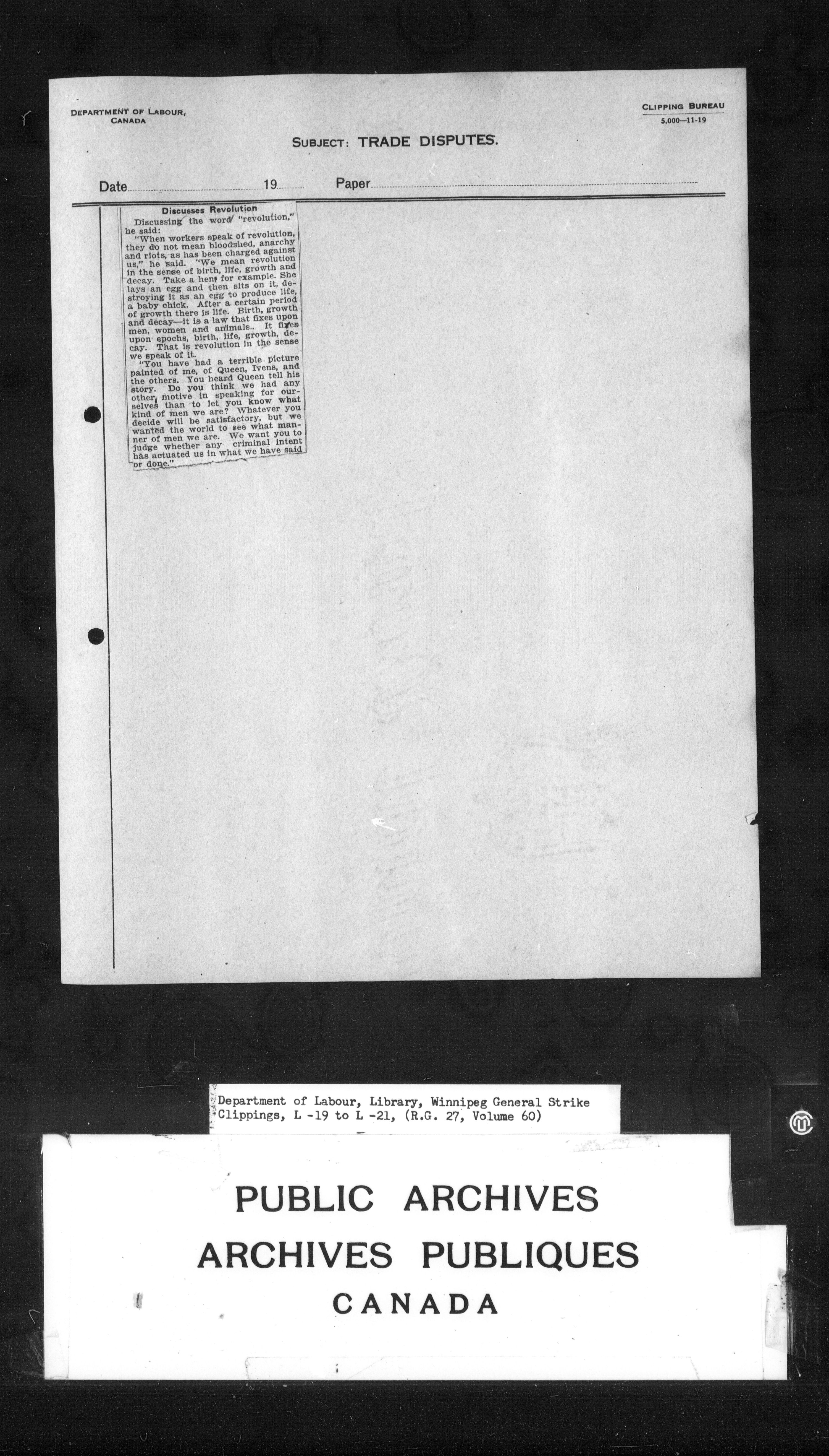 Department of Labour : Winnipeg General Strike Clippings - 4247