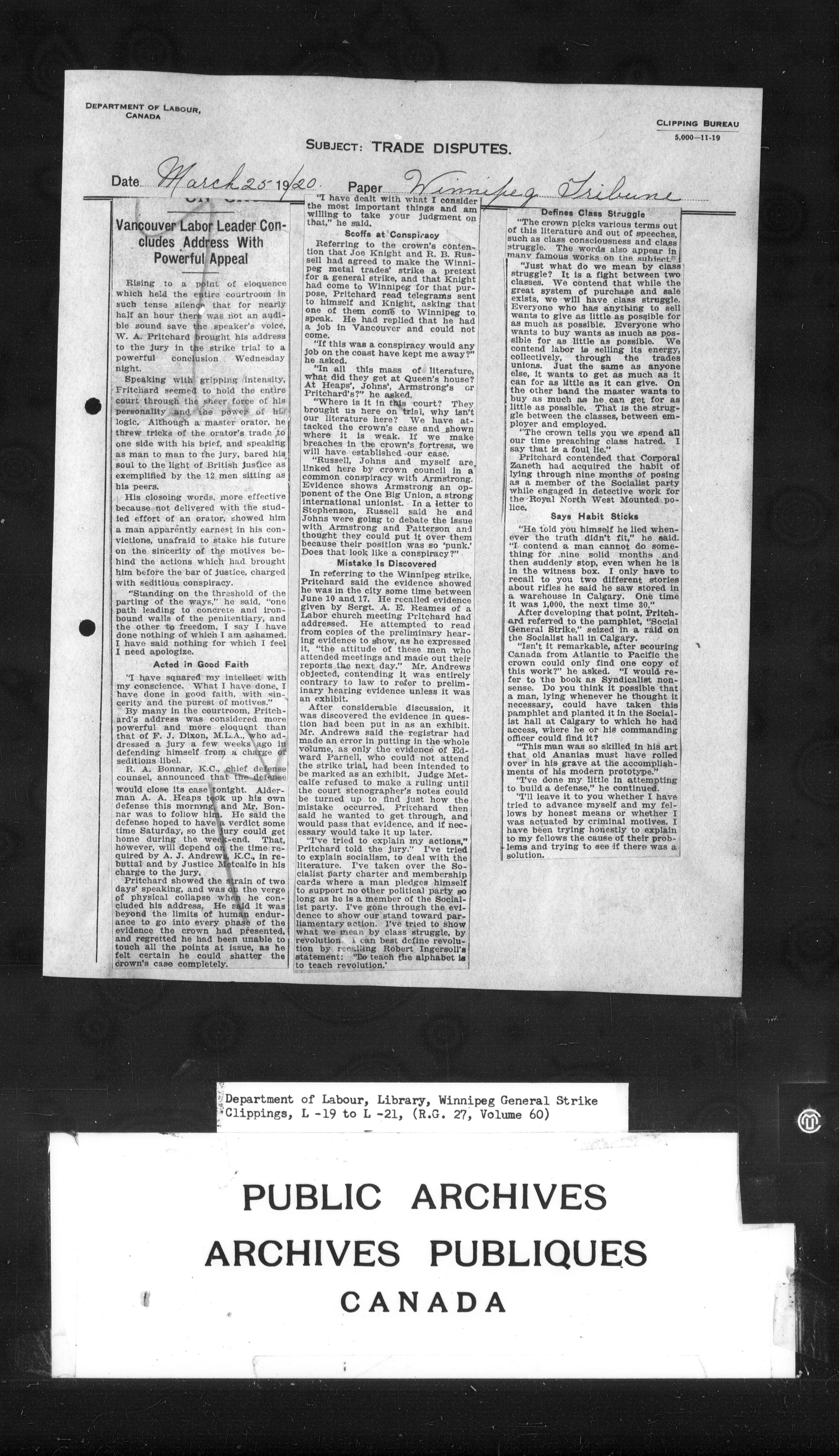 Department of Labour : Winnipeg General Strike Clippings - 4247