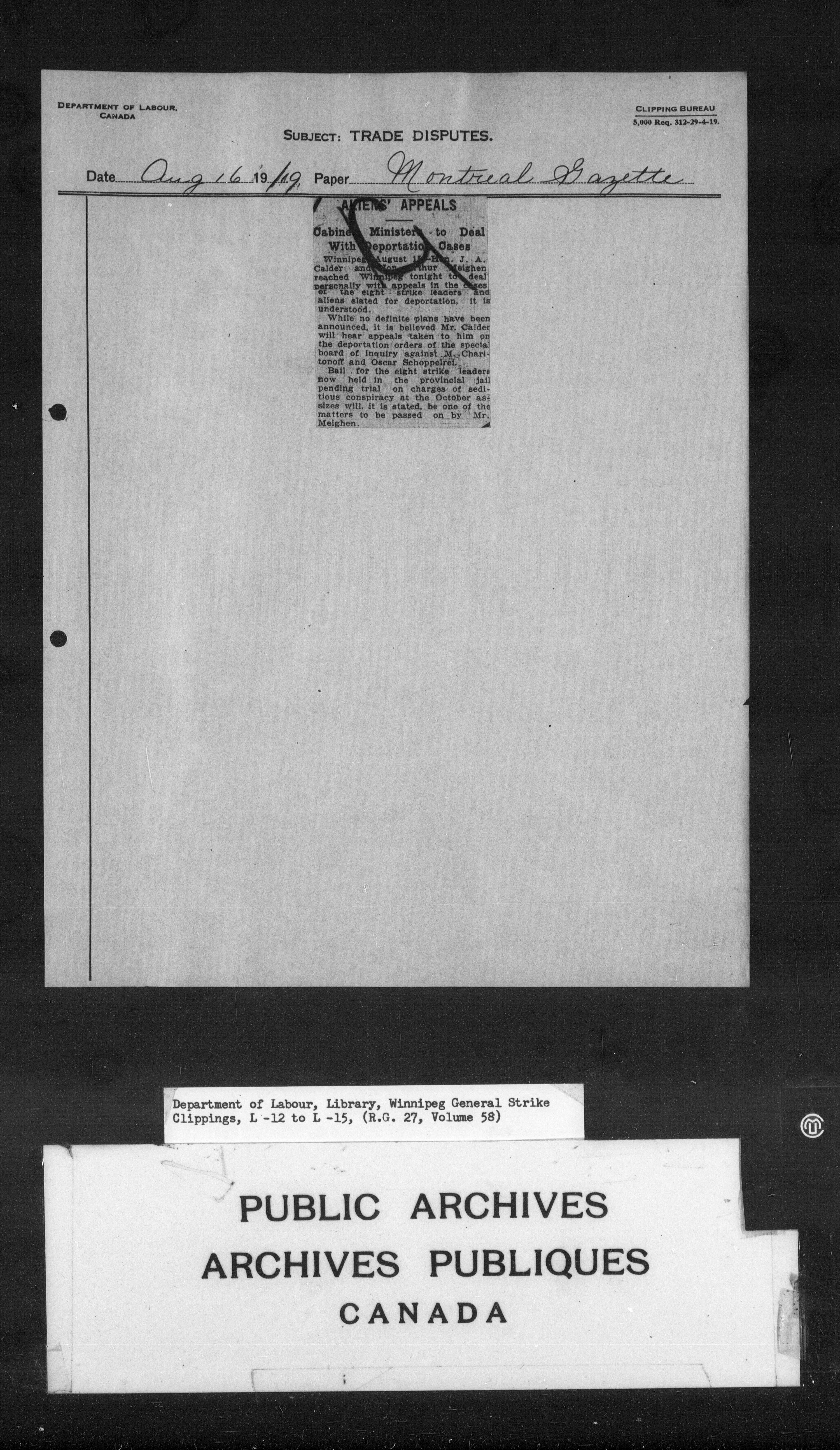 Department of Labour : Winnipeg General Strike Clippings - 4247