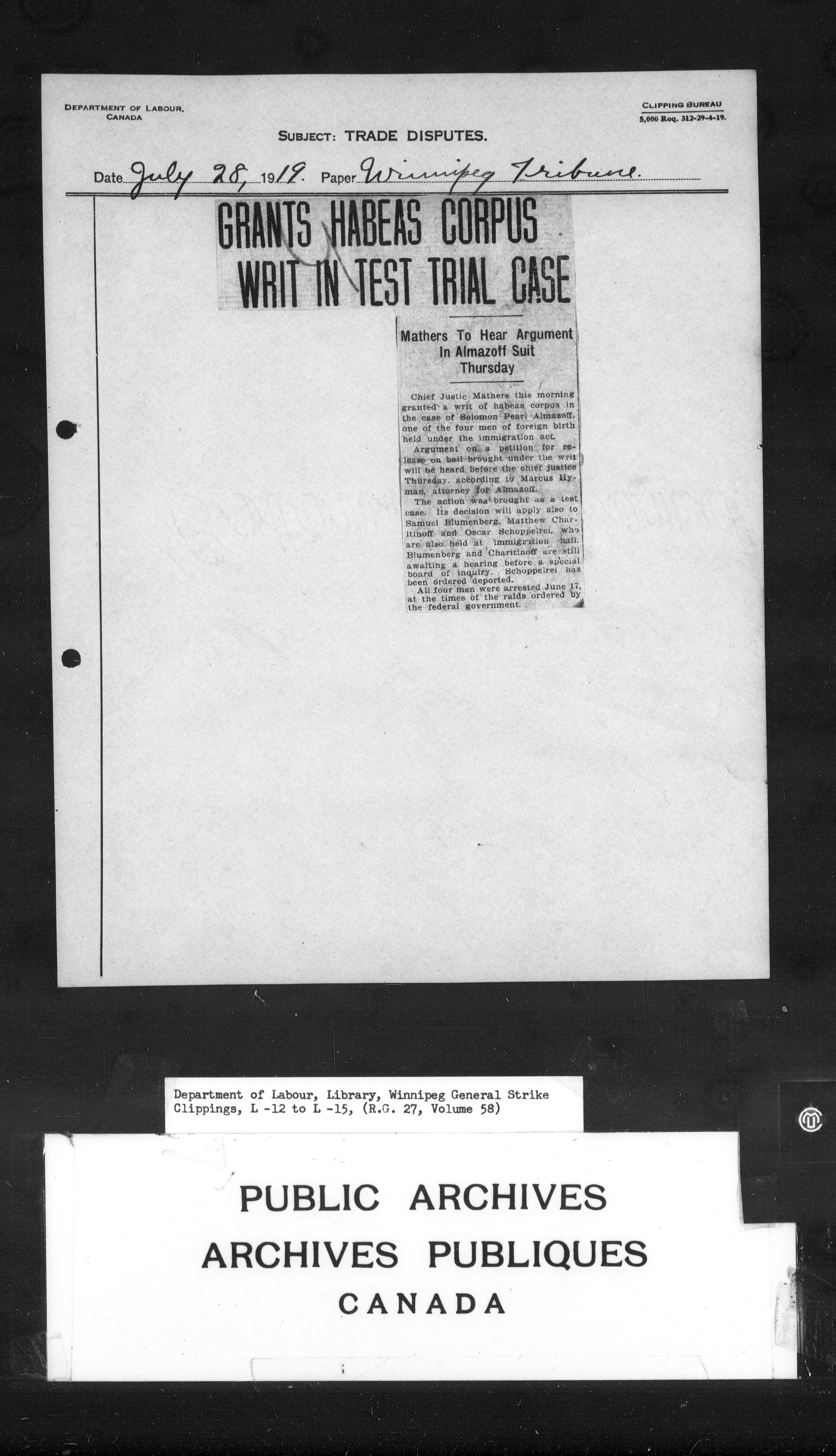 Department of Labour : Winnipeg General Strike Clippings - 4247