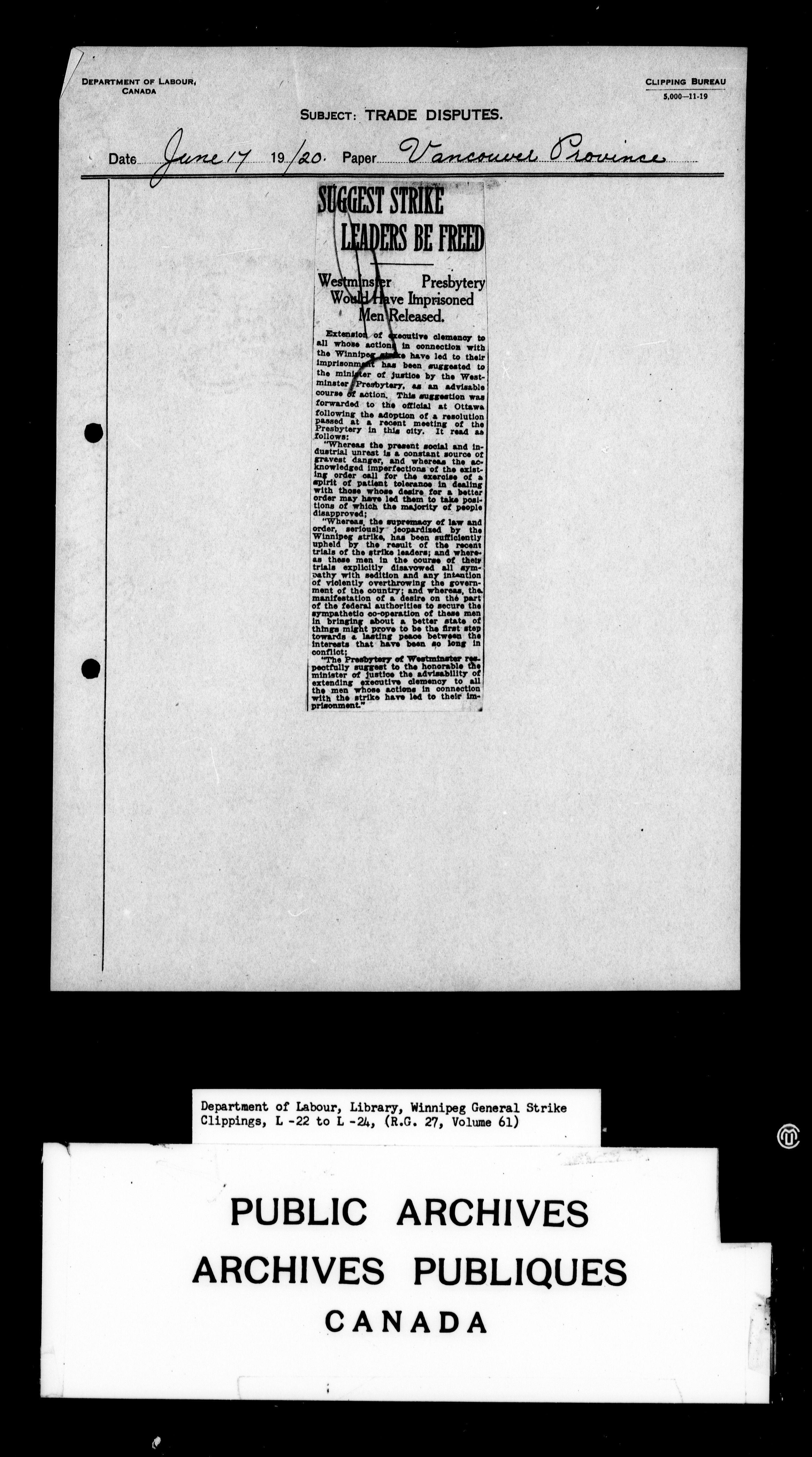 Department of Labour : Winnipeg General Strike Clippings - 4248