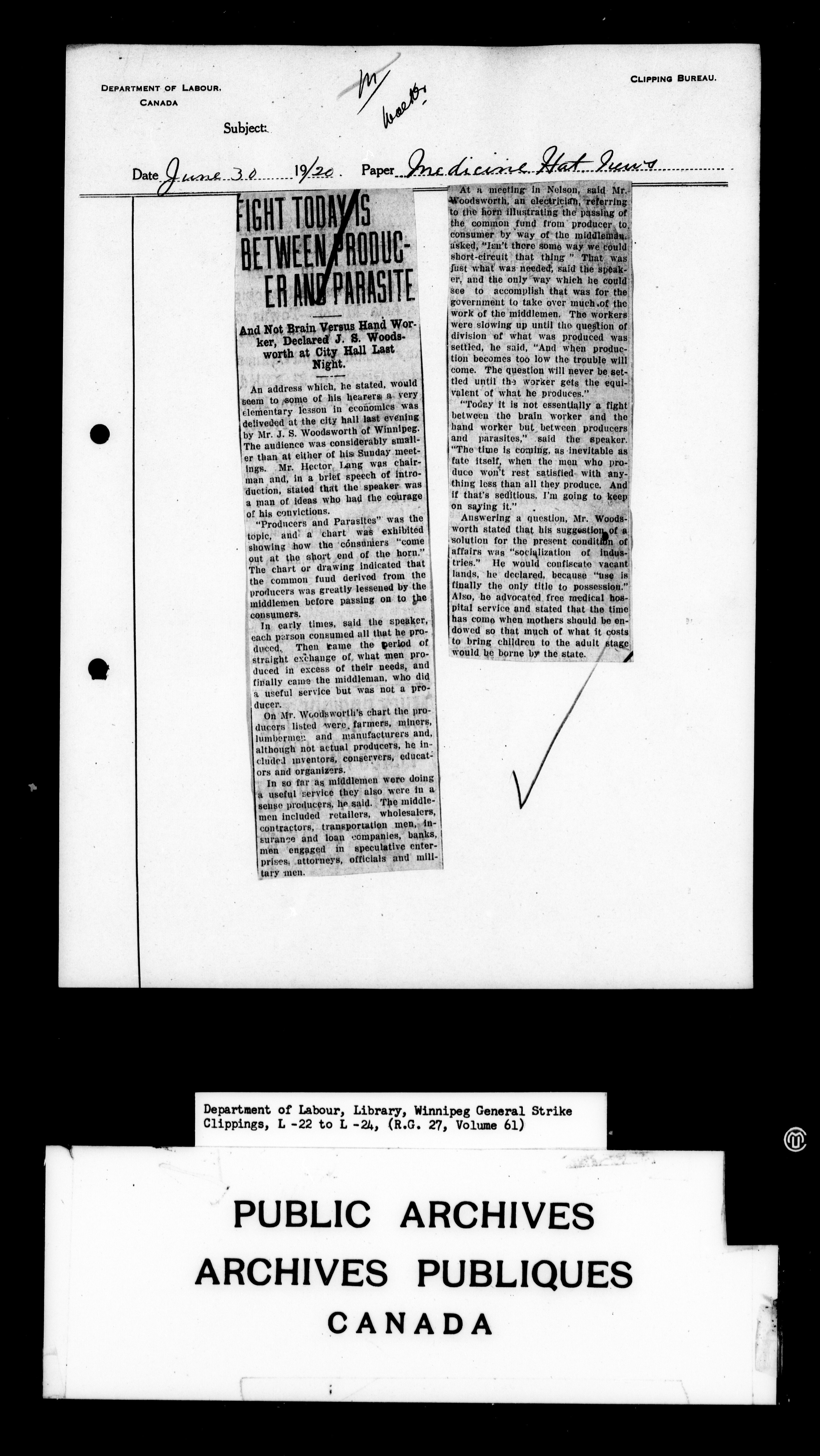 Department of Labour : Winnipeg General Strike Clippings - 4248