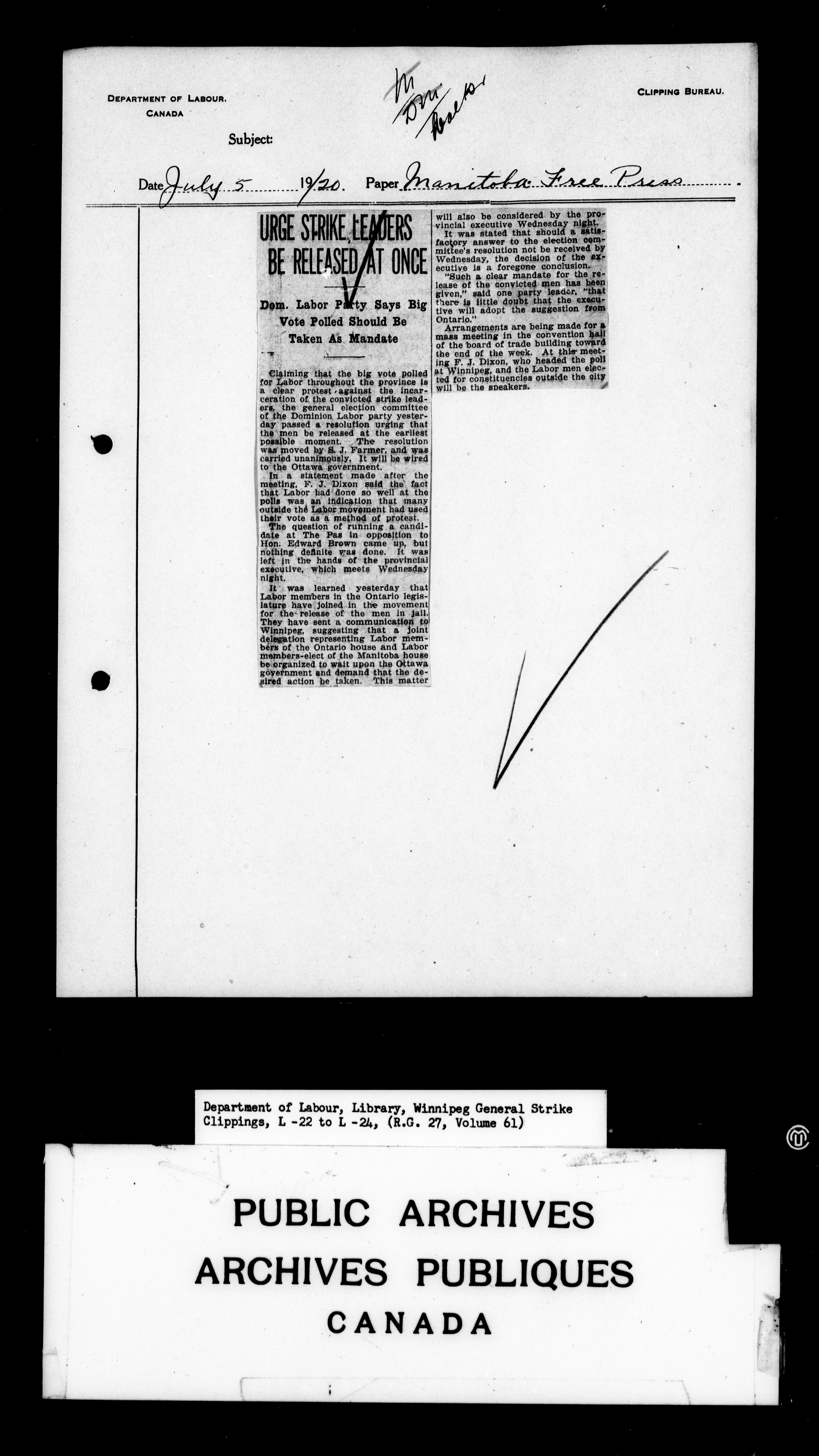Department of Labour : Winnipeg General Strike Clippings - 4248
