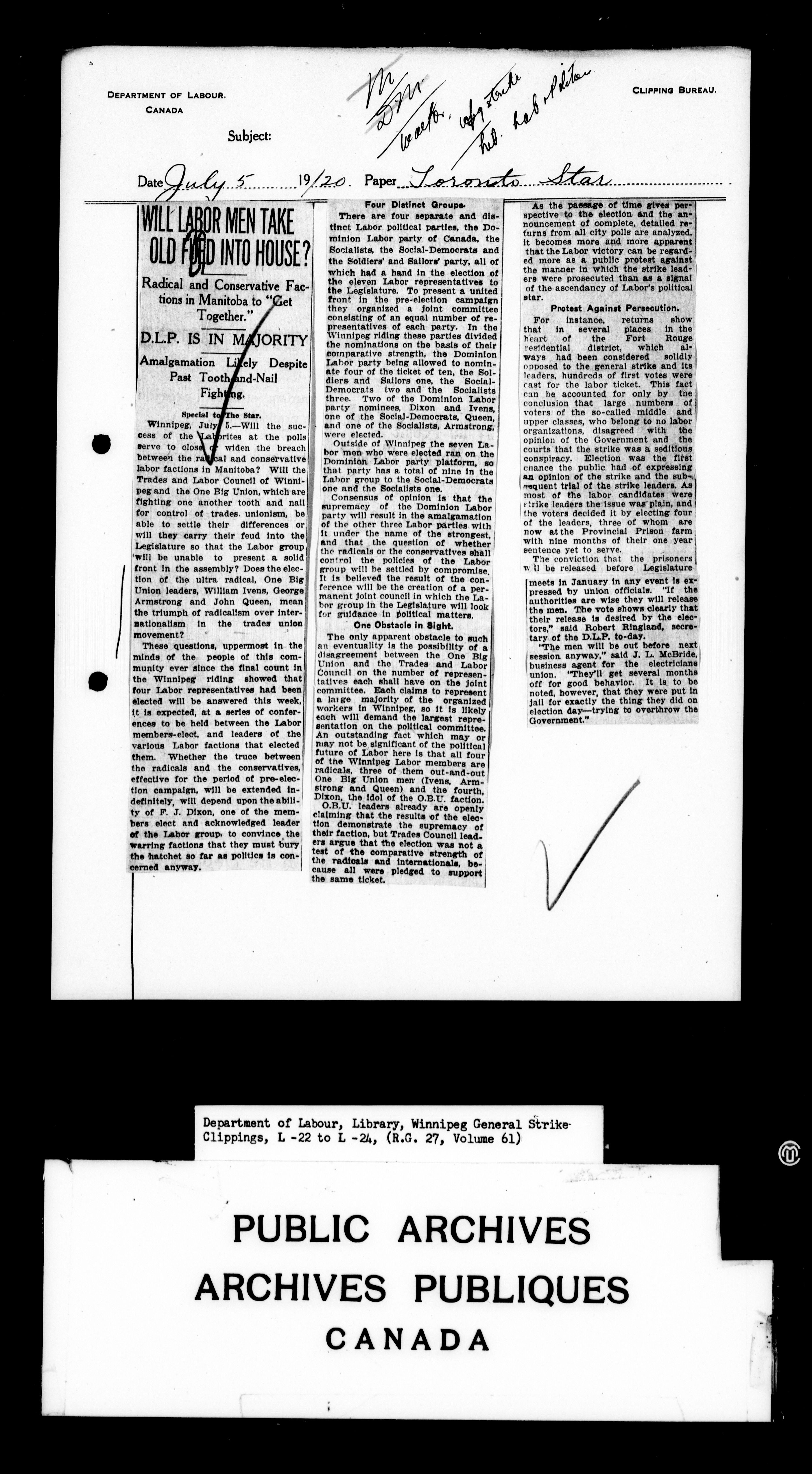Department of Labour : Winnipeg General Strike Clippings - 4248