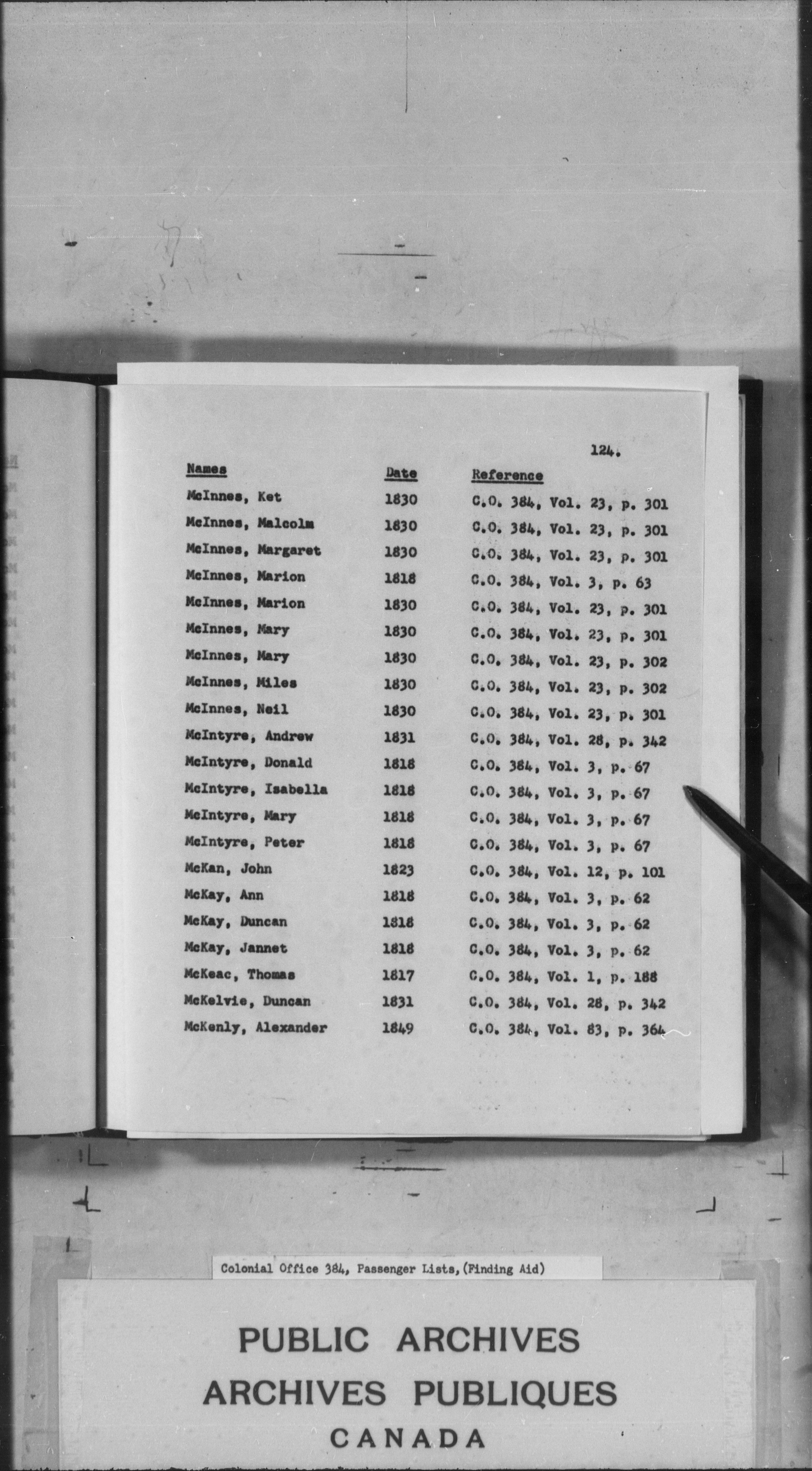 C.O. 384 Passenger Lists: Finding Aid 647 - 4252