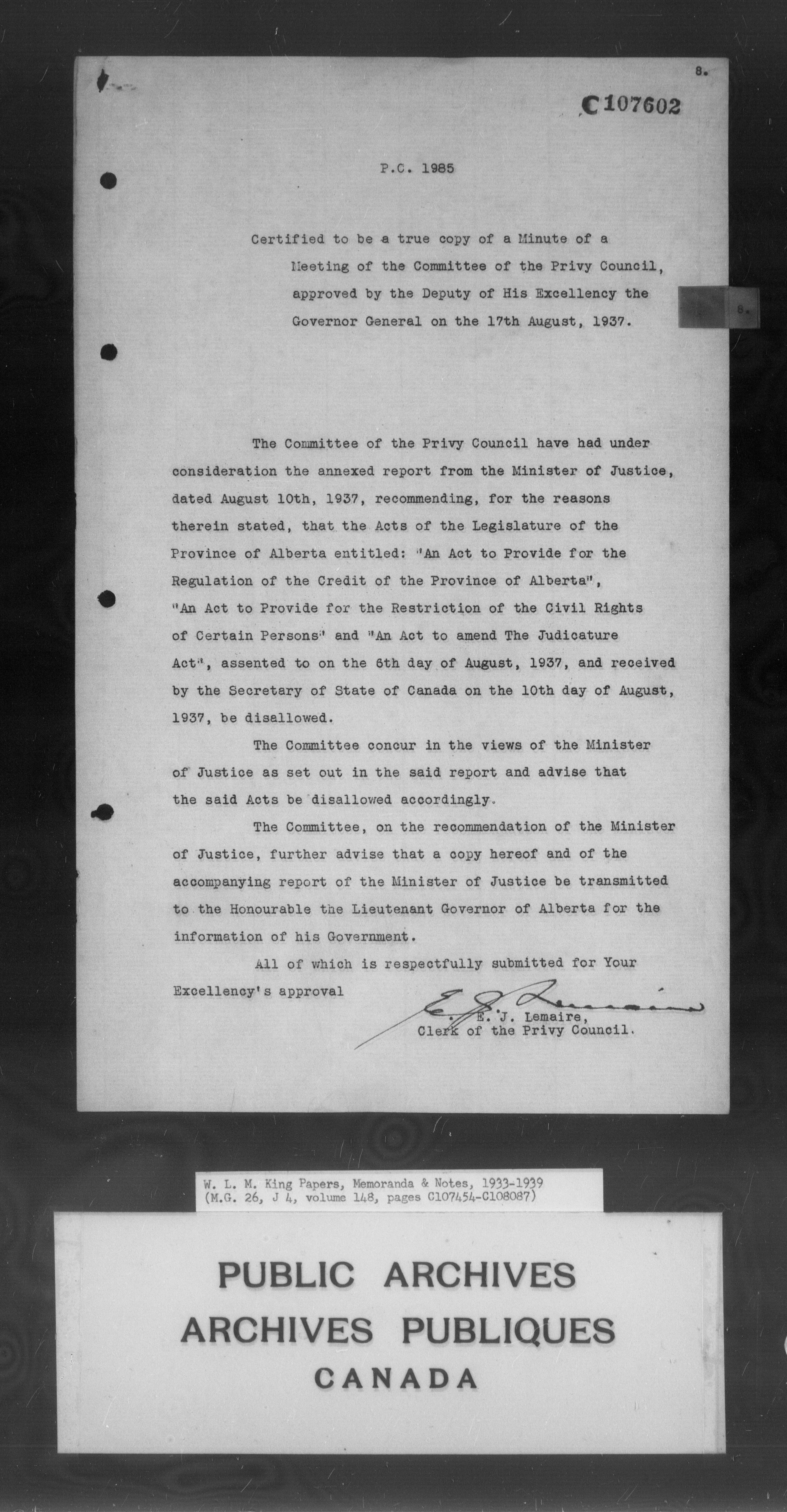 William Lyon Mackenzie King : Memoranda and notes (J4) : C-4253