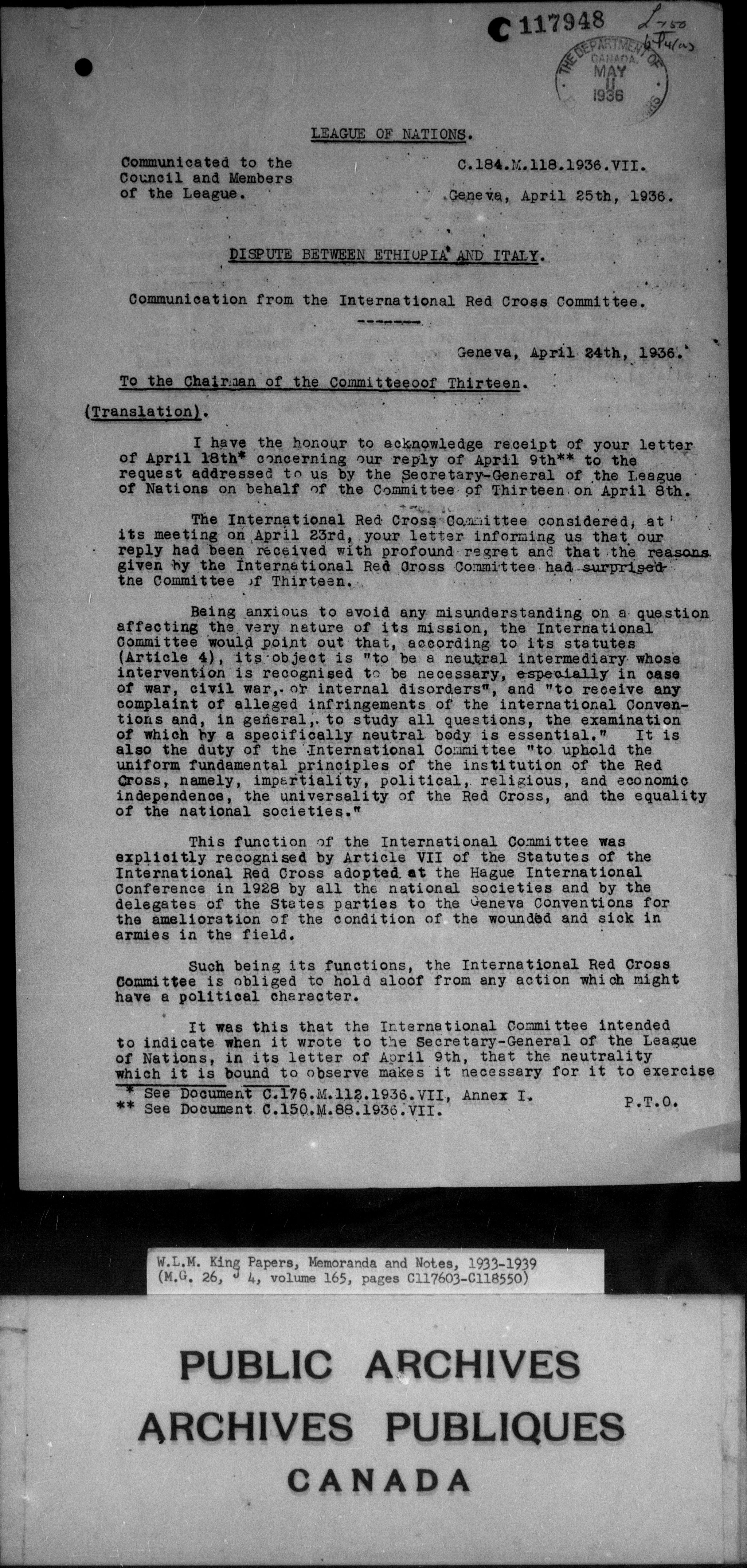 William Lyon Mackenzie King : Memoranda and notes (J4) : C-4261