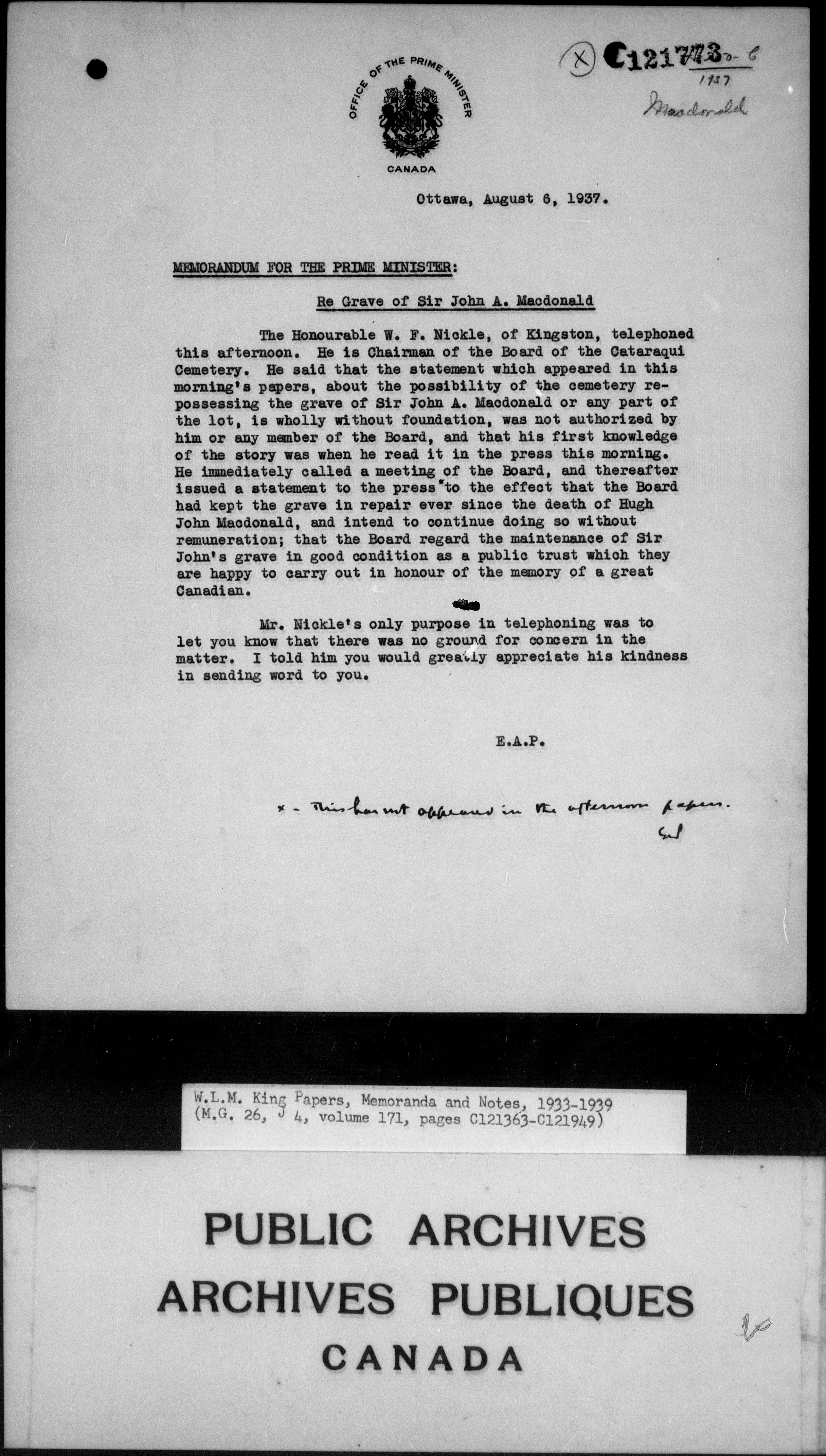 William Lyon Mackenzie King : Memoranda and notes (J4) - 4263